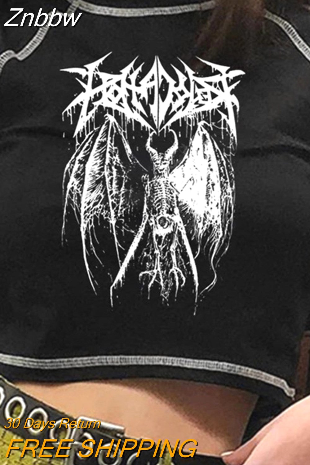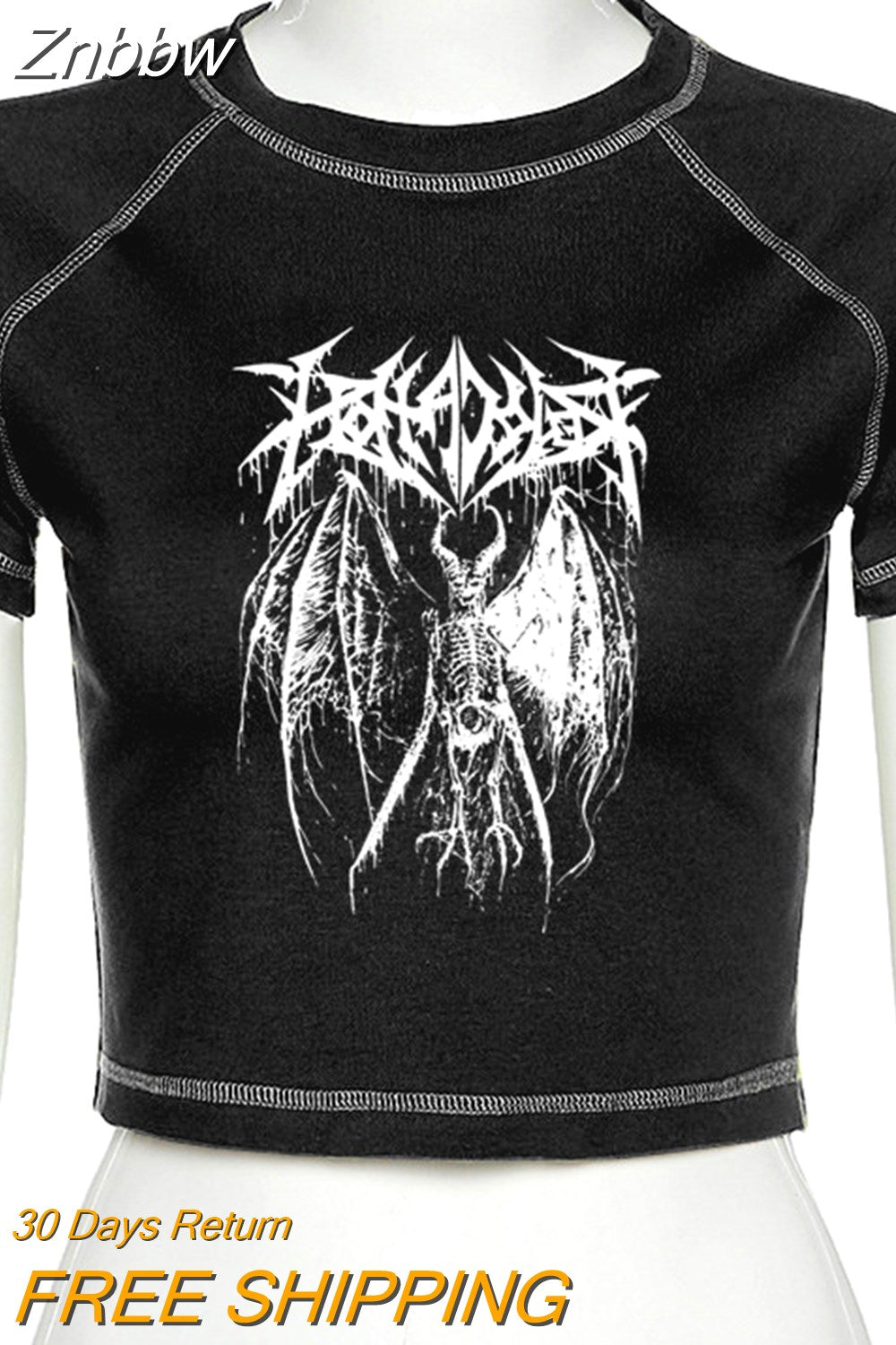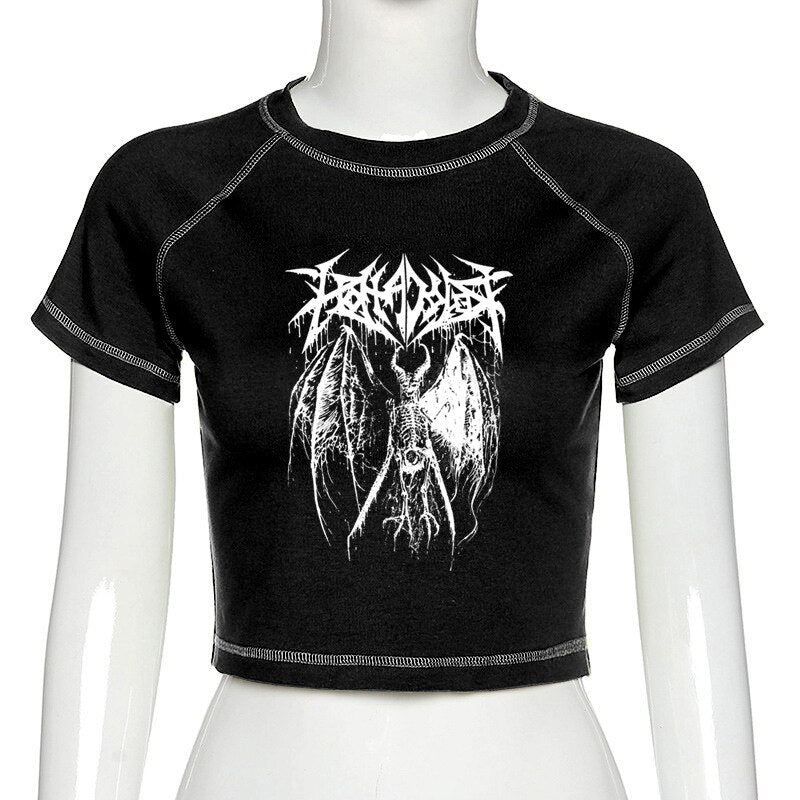 Znbbw Women's T-shirt Harajuku Y2K crop Top Harajuku Retro Korean Black Demon Punk Gothic Anime Print Clothes Slim anime