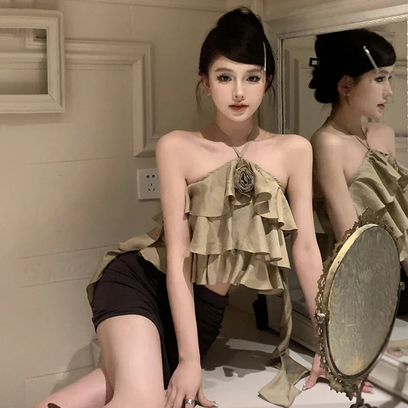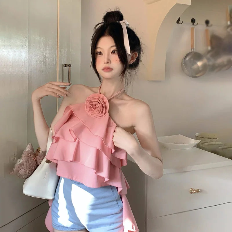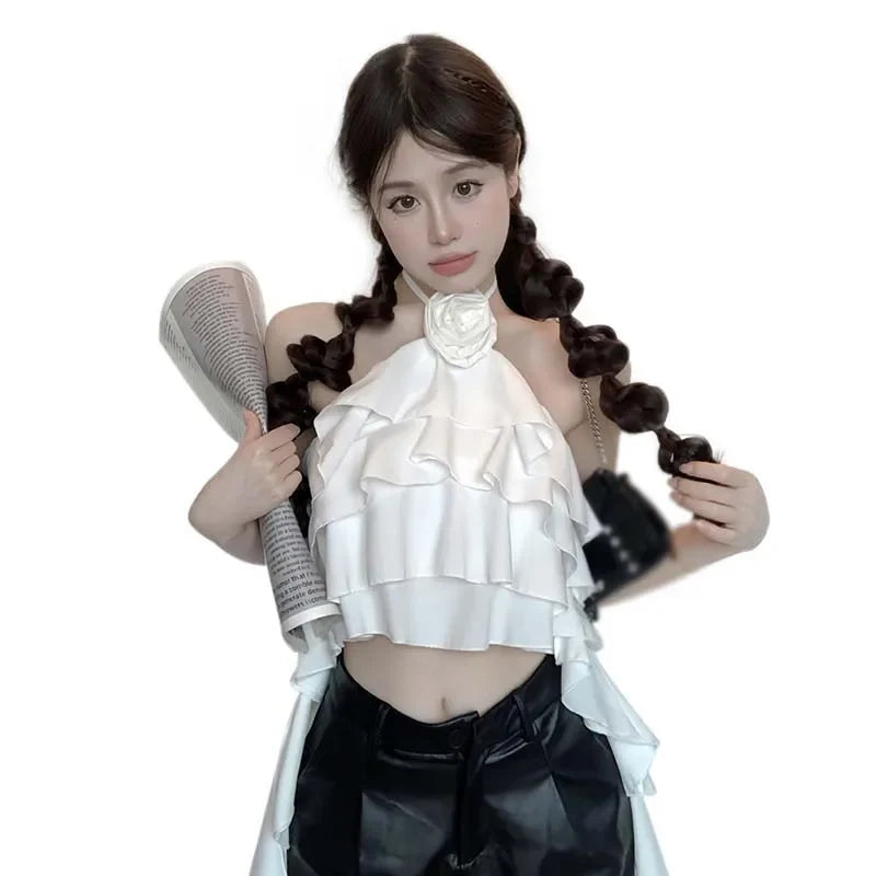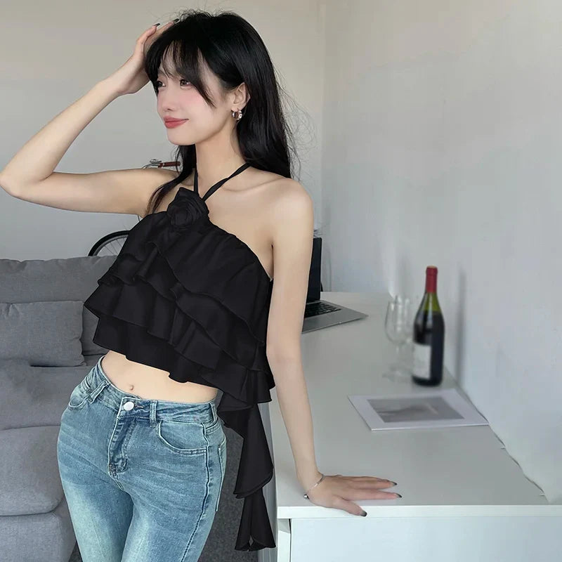 Znbbw Women's Top Women's Vest Ruffle Backless Flowers Versatile Sexy Camisole