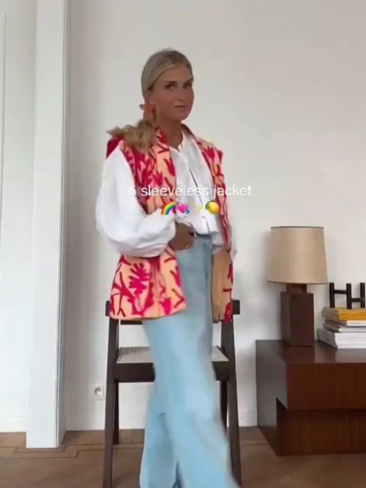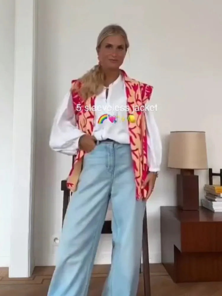Znbbw Women's V-neck Vintage Printed Vest Coat Lady Fashion Casual Loose Sleeveless Tops 2023 Female Chic Elegant Club Street Wear