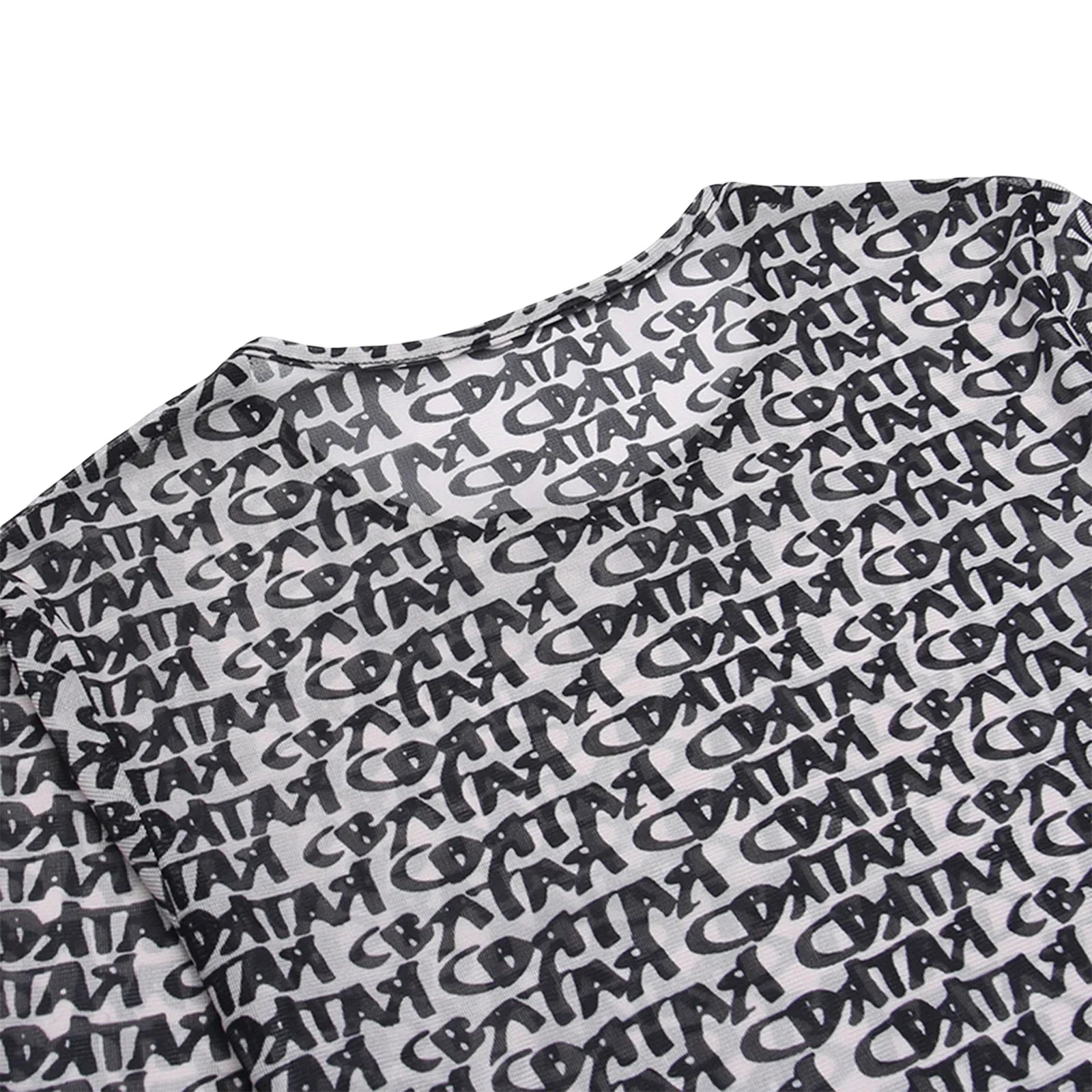 Znbbw Y2K Long Sleeve Bodysuit Women Spring Skinny Sexy See Through Top Letter Print Fashion Party Club Outfit Clothing