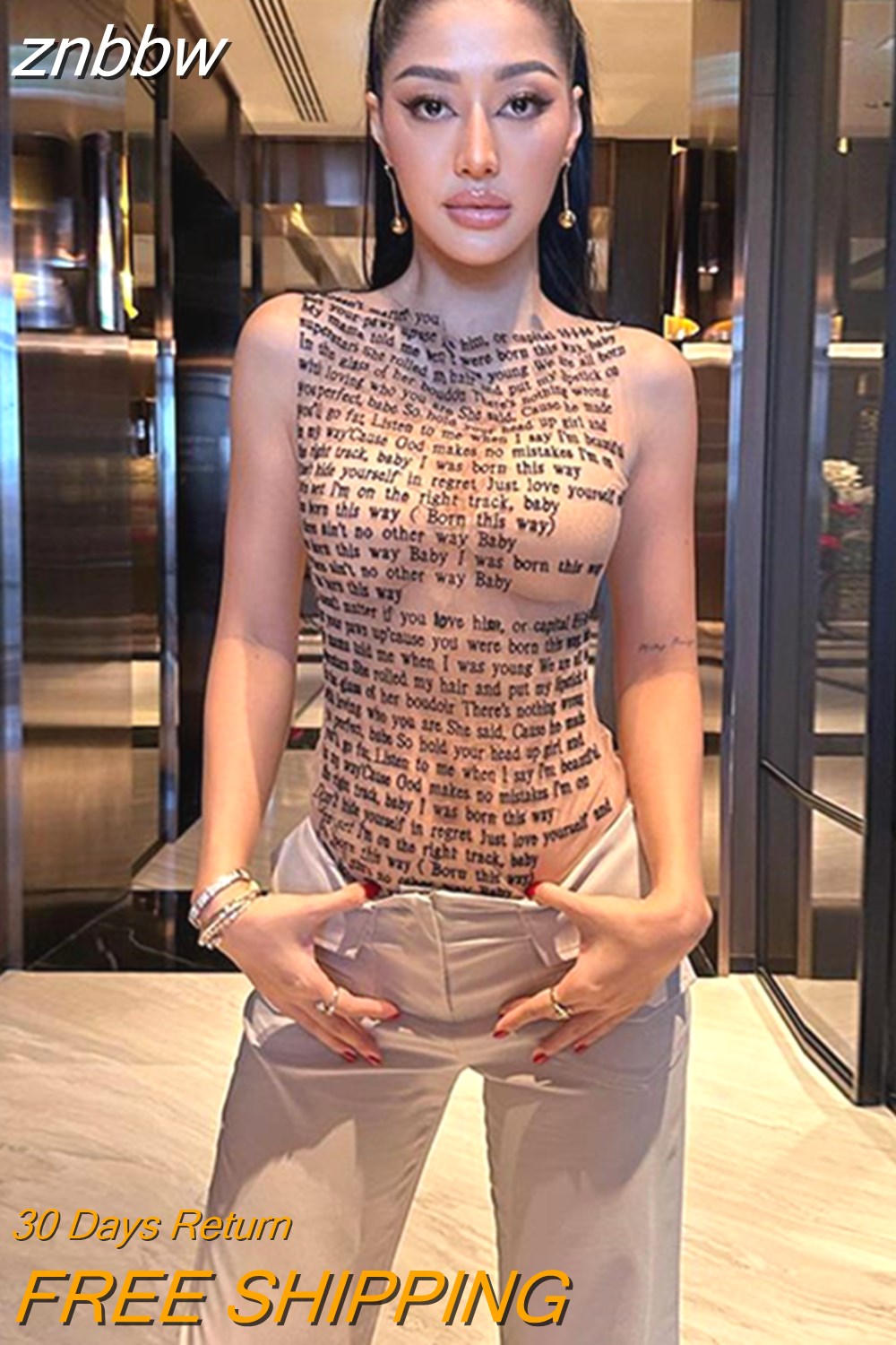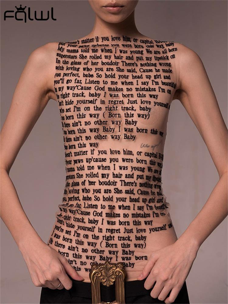 znbbw Y2k Streetwear Lettering Print One Piece Tee Club Outfit For Women 2023 Summer O Neck See Through T Shirt Sleeveless Top
