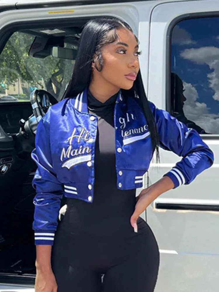 Model Number: Letter Embroidery Short Baseball Jacket For Women