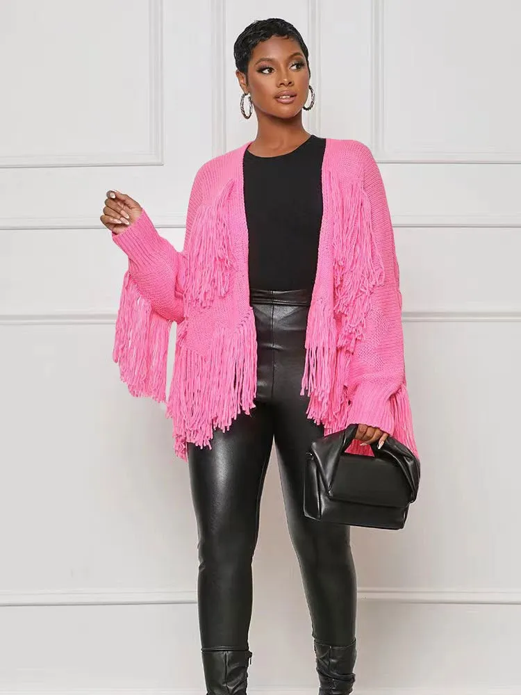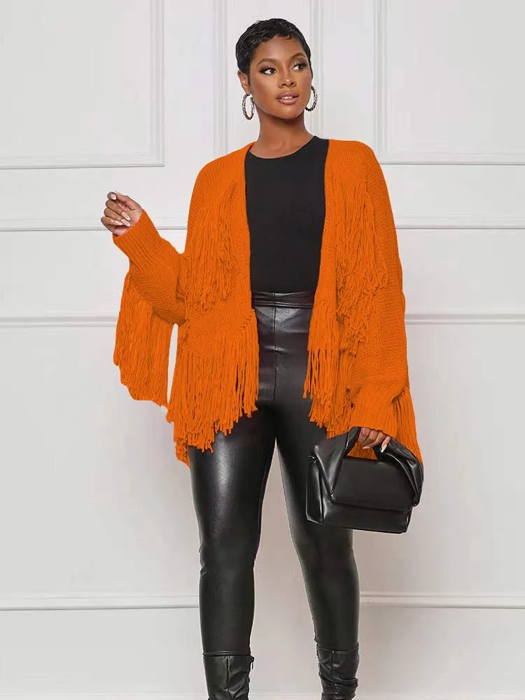 Model Number: Knitted Loose Tassel Full Sleeve Cardigans Sweater