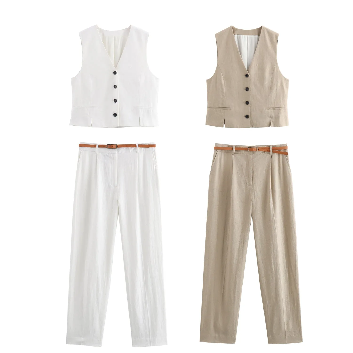 White Blouse, Khaki Blouse, White Trousers, Khaki Trousers