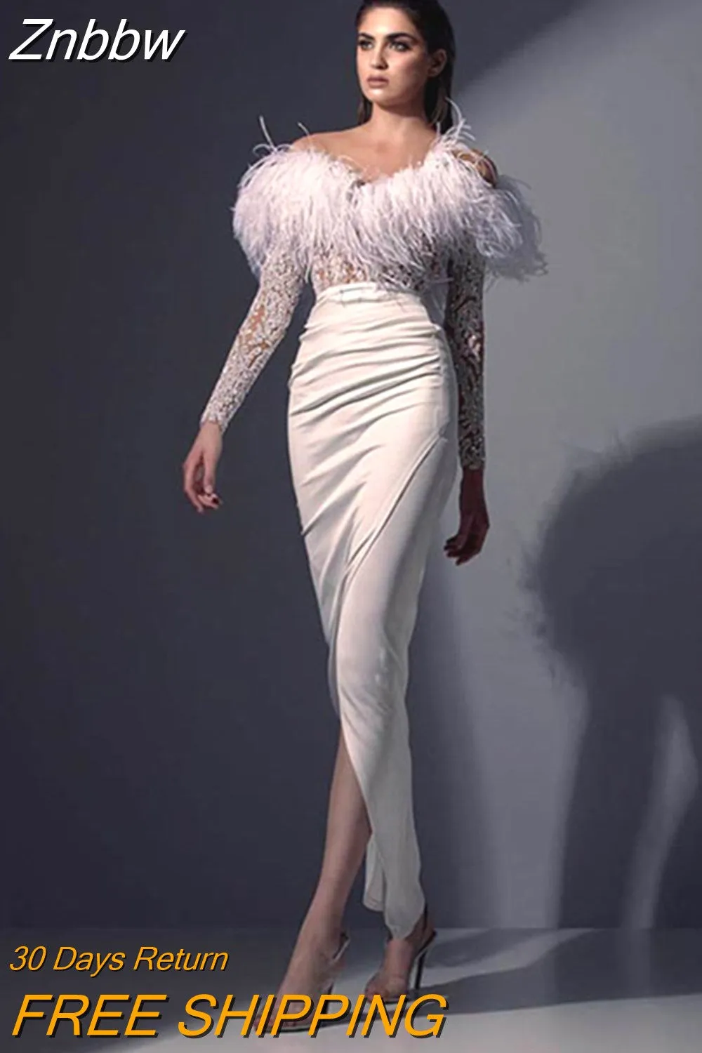 Model Number: Backless Split Side Feather Sequins Evening Dresses