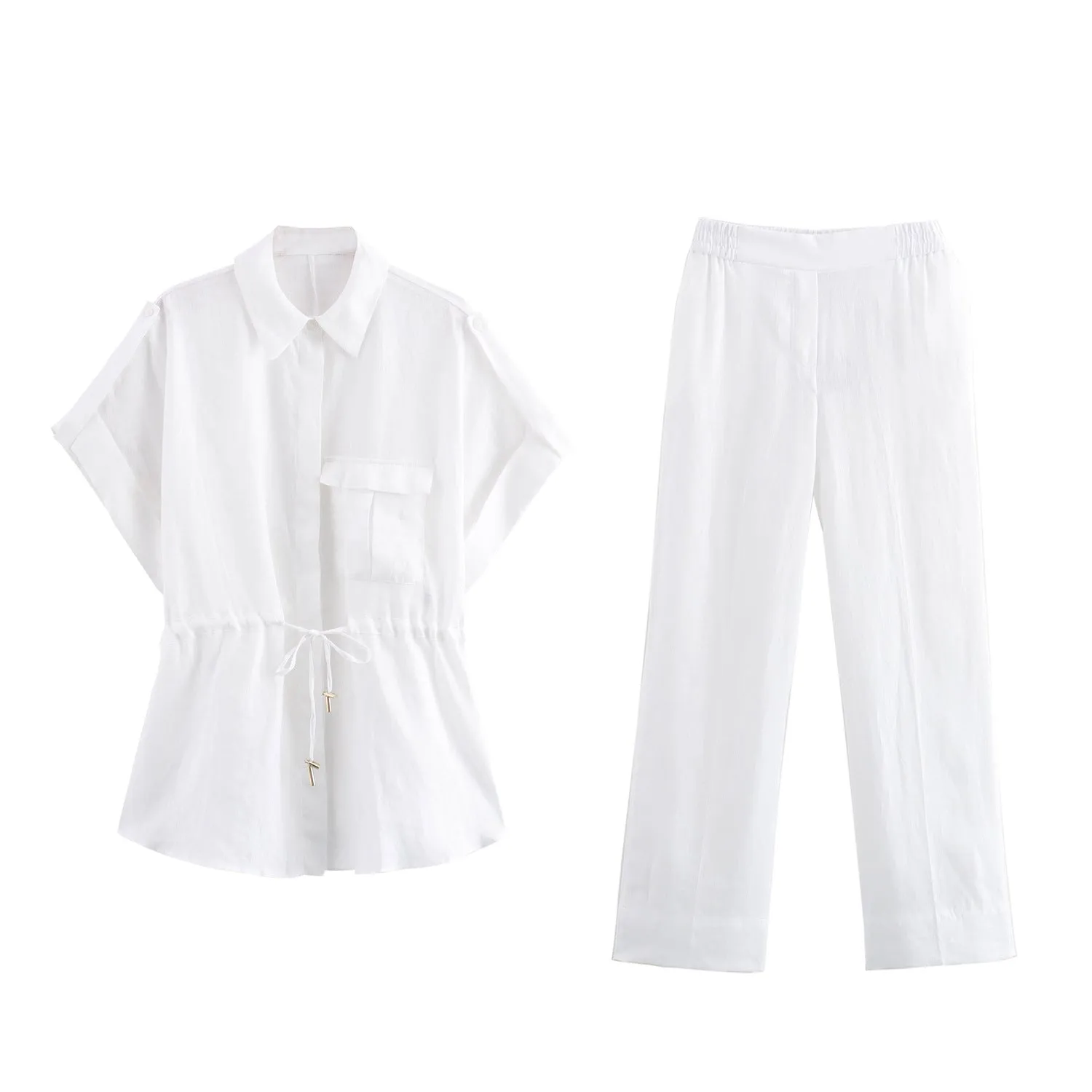 White Blouse, Green Blouse, White Trousers, Green Trousers