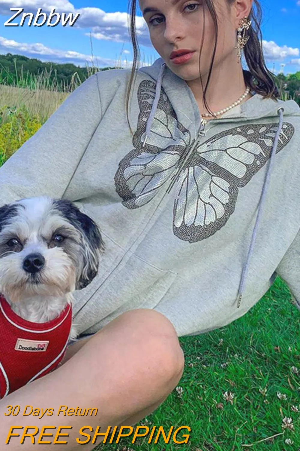 Model Number: hoodie women zip itself oversize rhinestone hoodie zip up hoodie
