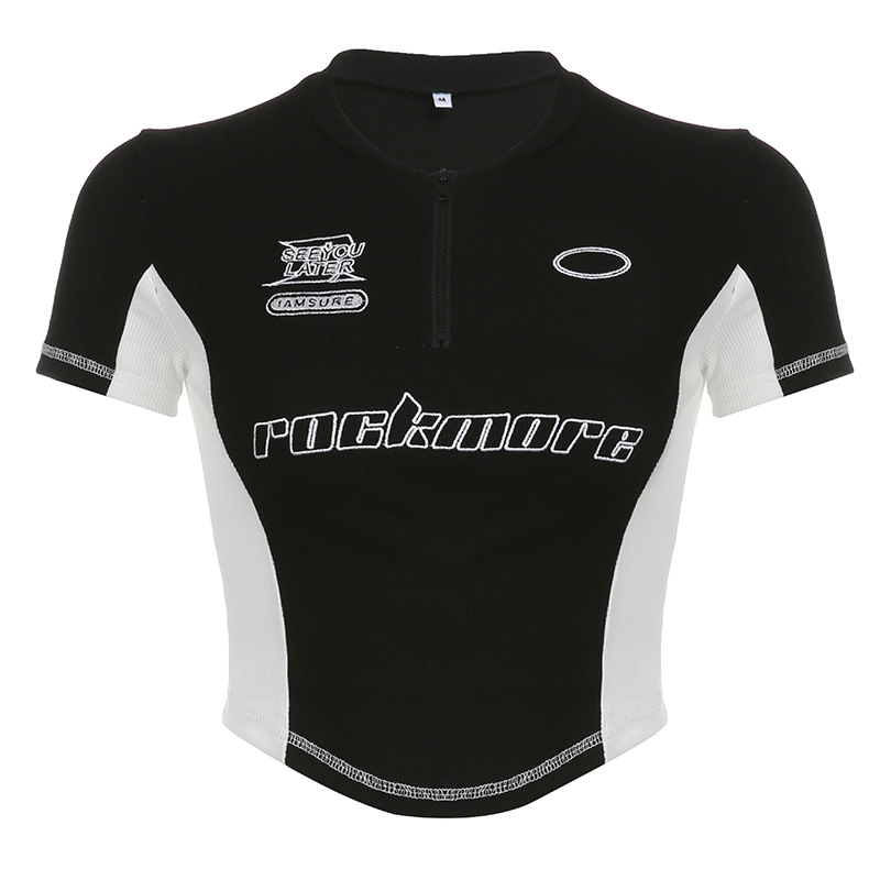 2024 Spring And Autumn New Splicing Color Thin Ins Embroidered Street Zipper Function T-Shirt