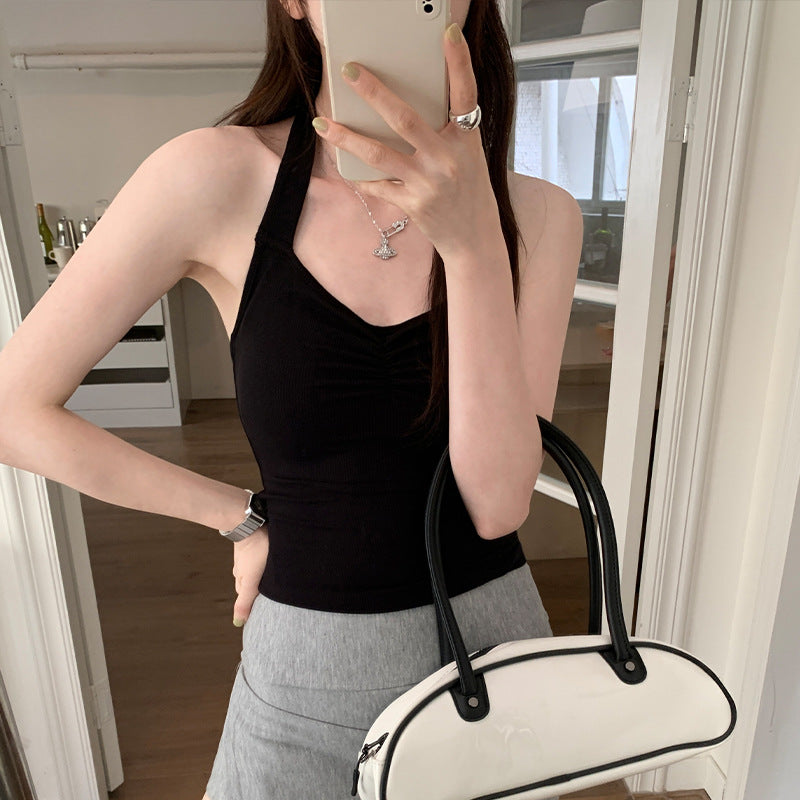 The Sexy Hot Girl Hangs The Neck Suspenders The Vest The Female Summer New Design Feeling Wrinkles The Waist To Show The Thin Inside Wears The Jacket