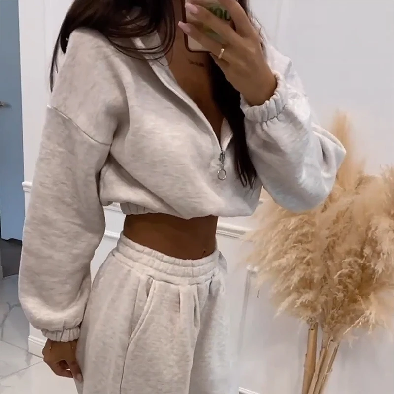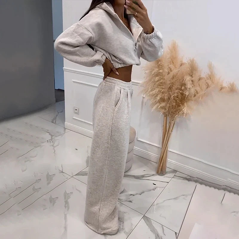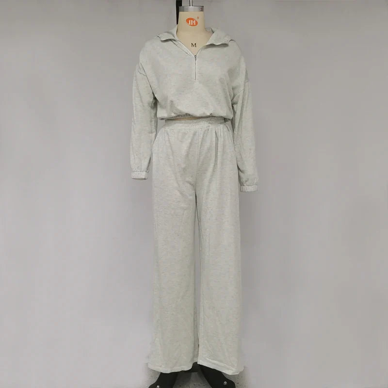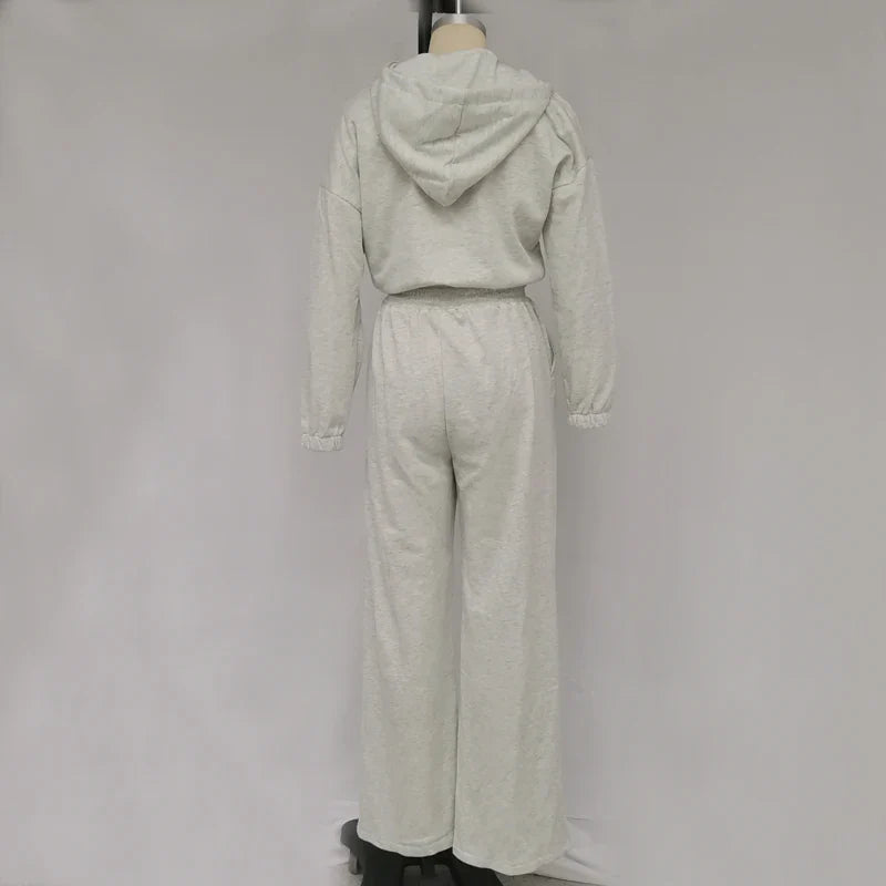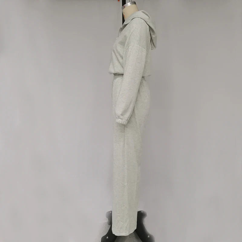 Znbbw 2 Piece Sets Women Outfit Autumn Fashion Casual Solid V Neck Zipper Nipped Waist Hooded Top Loose Pants Sets With Pockets