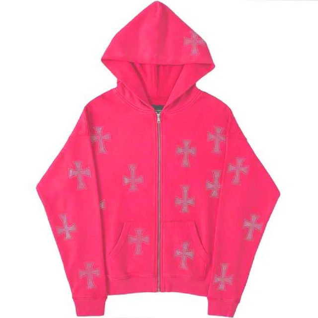 Znbbw 2023 New Hip Hop Street Style Pink Top Jogging Harajuku Style Retro Print Loose Zipper Jacket Korean Vintage Streetwear