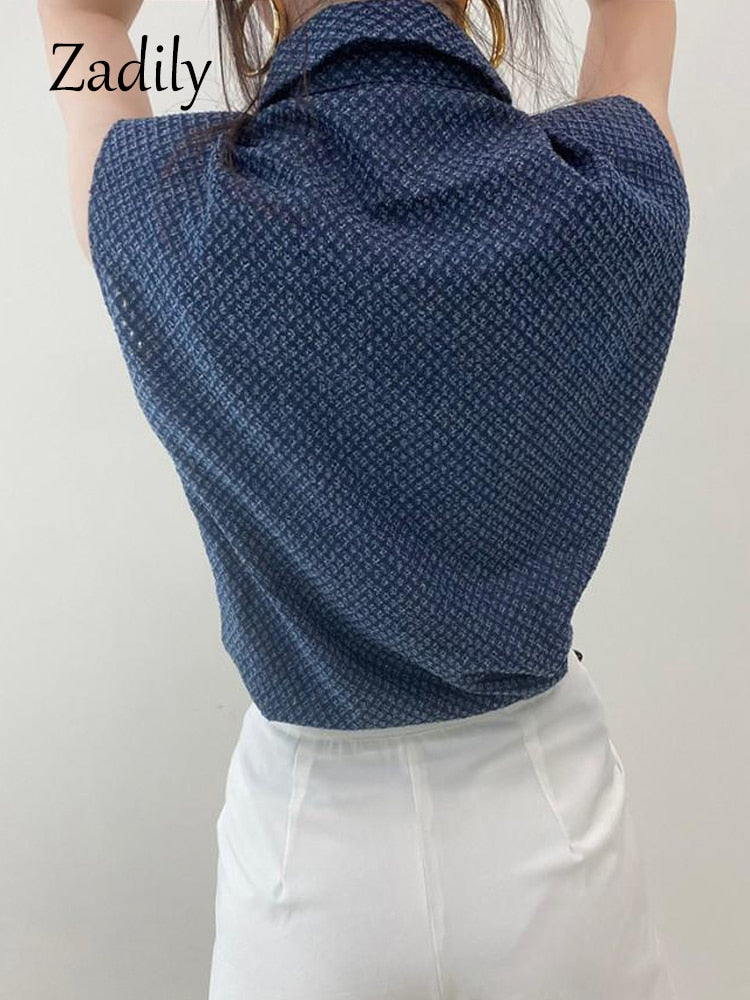 znbbw 2023 Summer Hole Denim Sleeveless Shirt Women Street Style Button Up Ladies Tops Casual Female Clothing Blouse