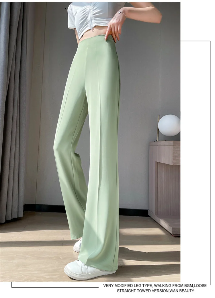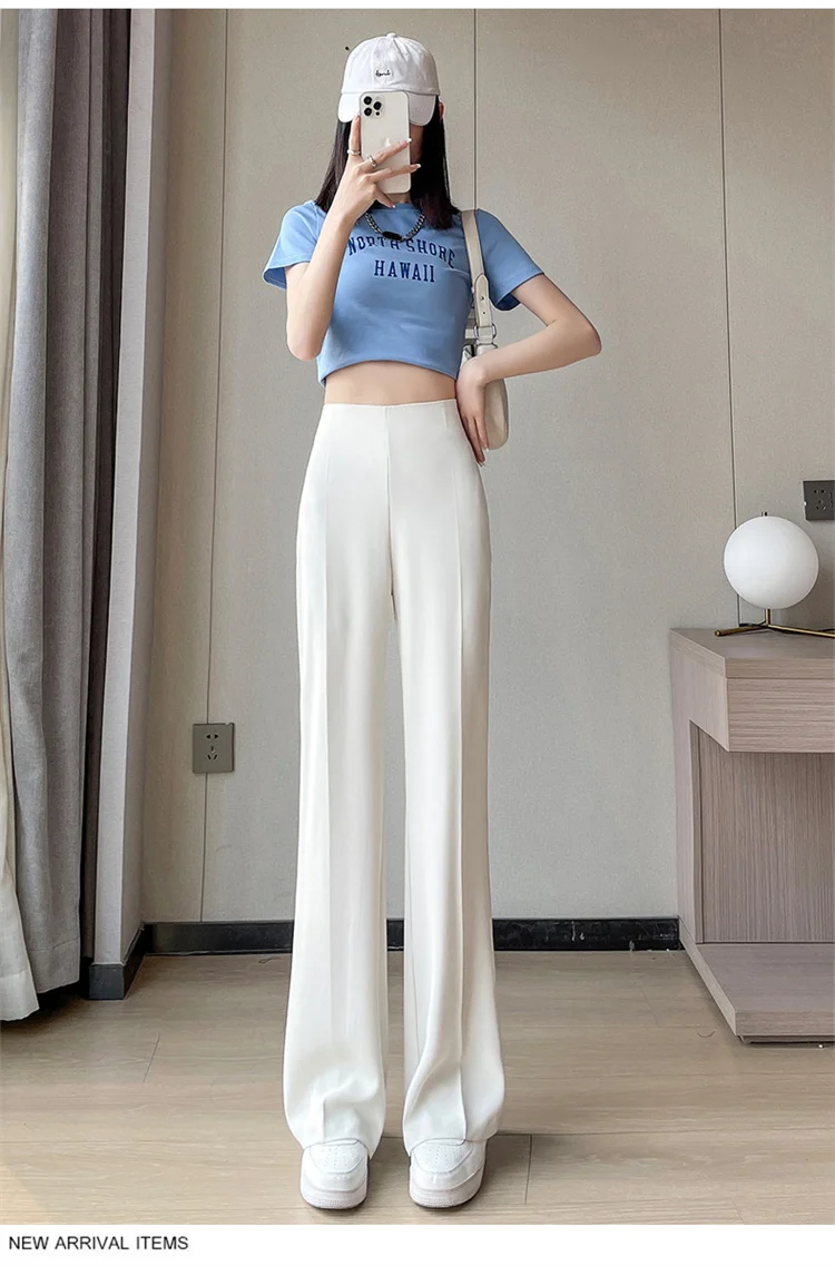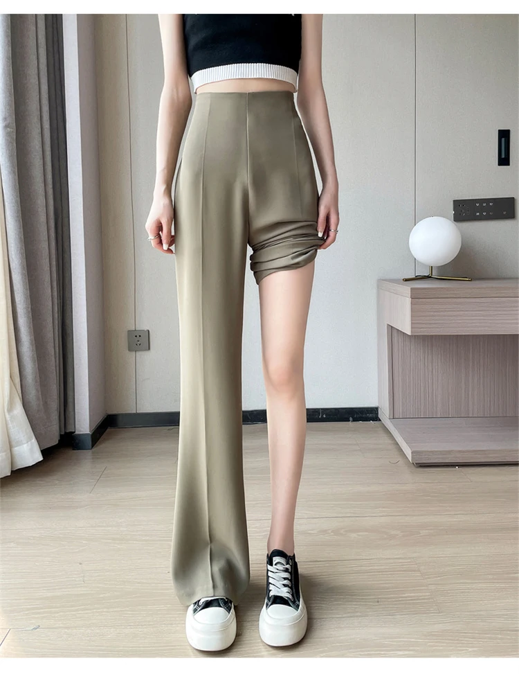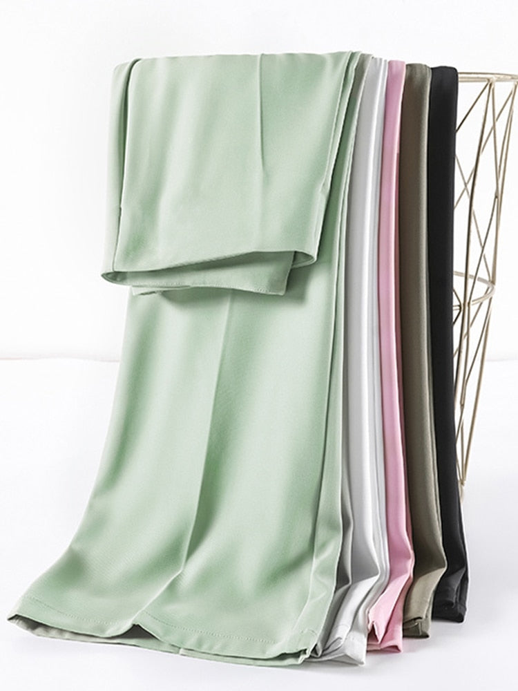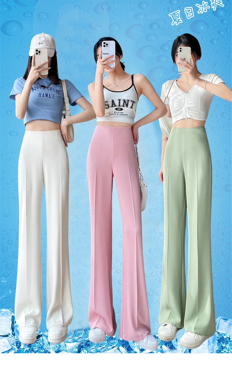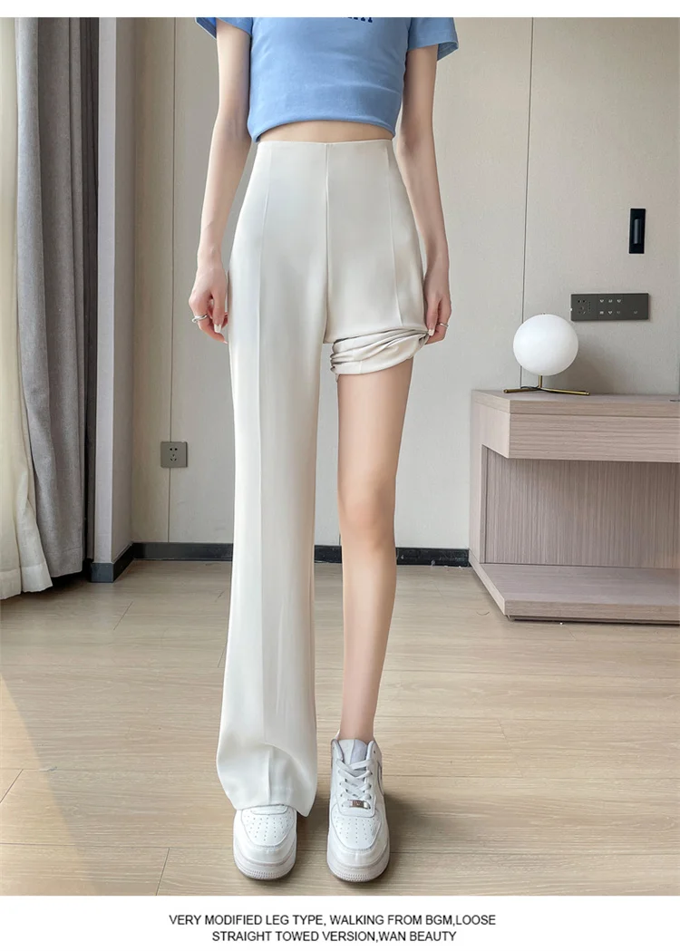 Znbbw 2023 Summer Thin Drape Ice Silk Pants Women Simplicity Straight Long Trousers Womens Office Lady Casual Suit Pants