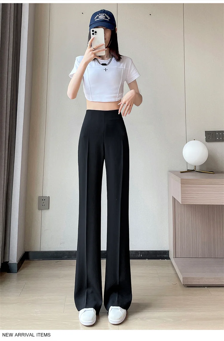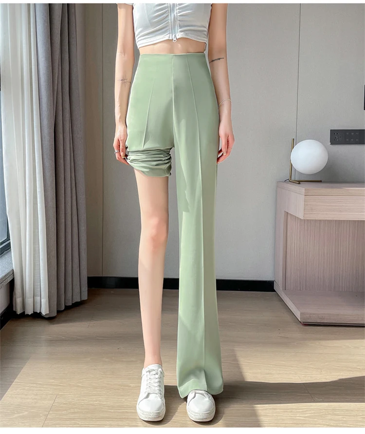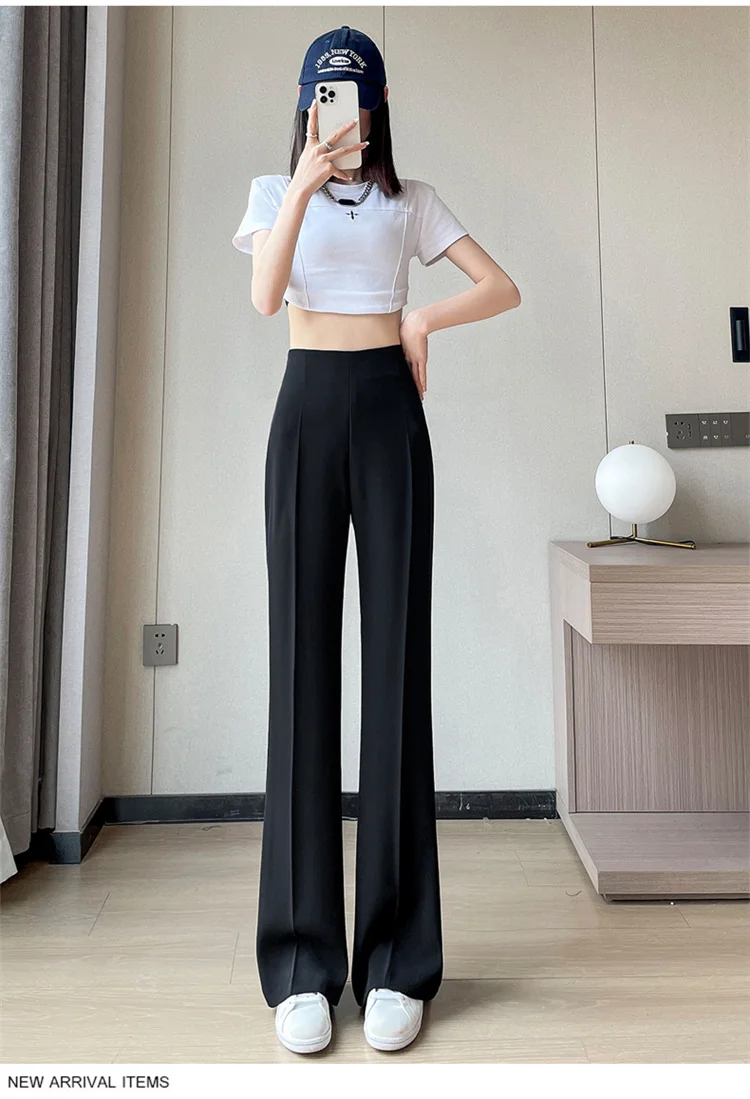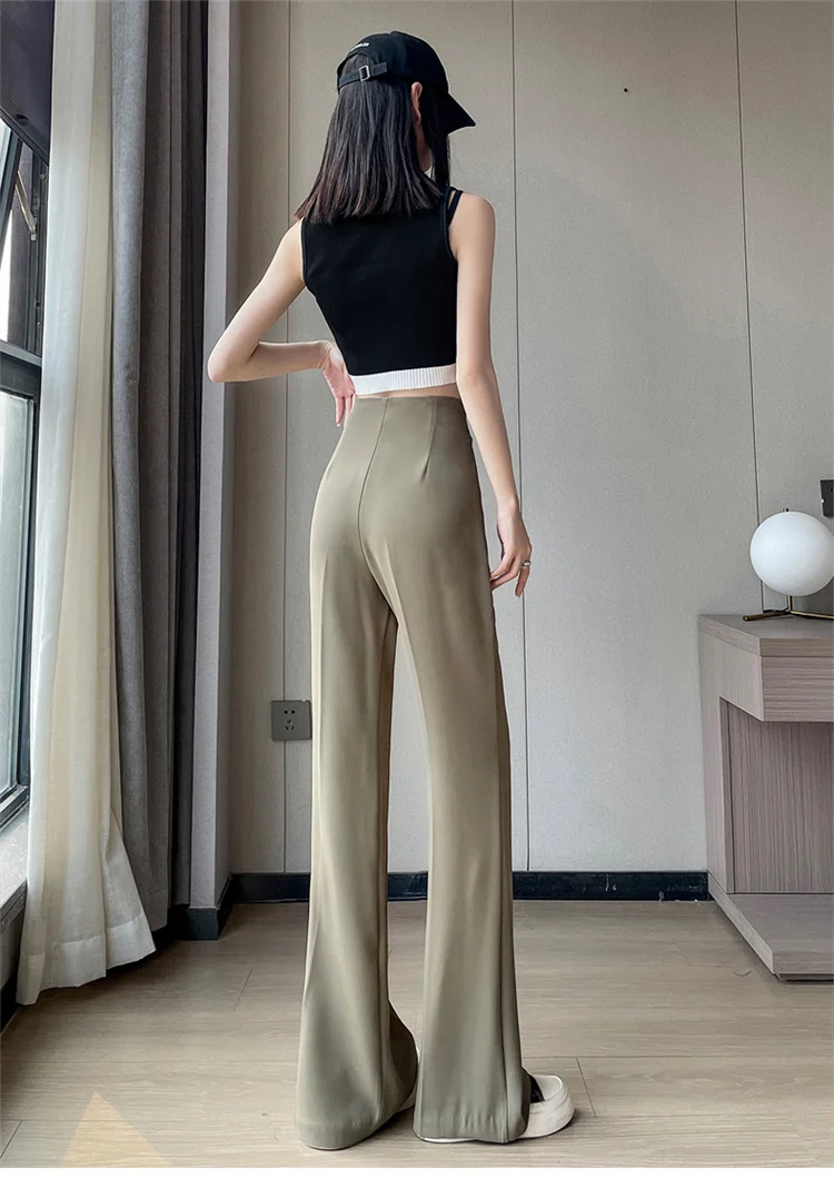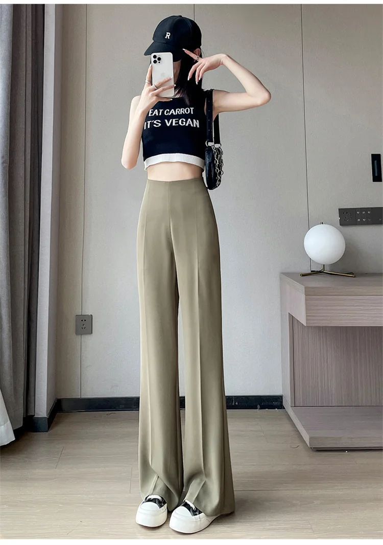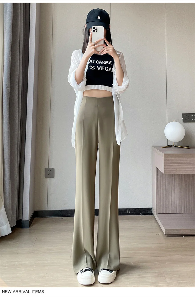Znbbw 2023 Summer Thin Drape Ice Silk Pants Women Simplicity Straight Long Trousers Womens Office Lady Casual Suit Pants