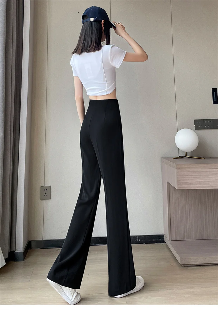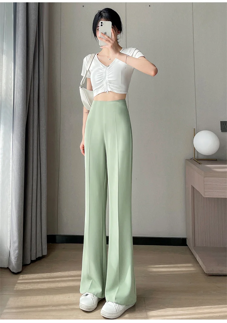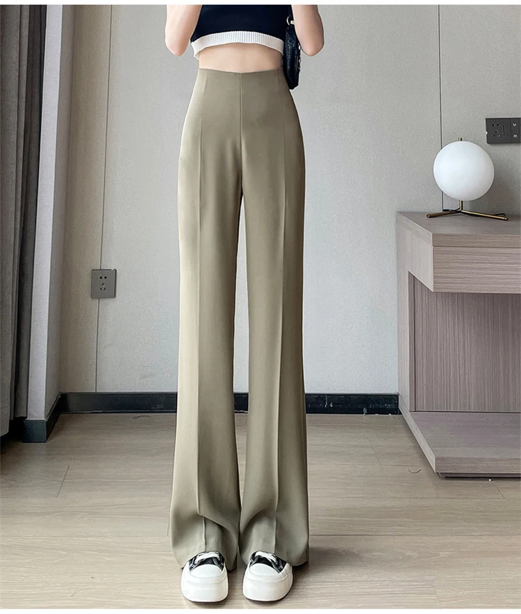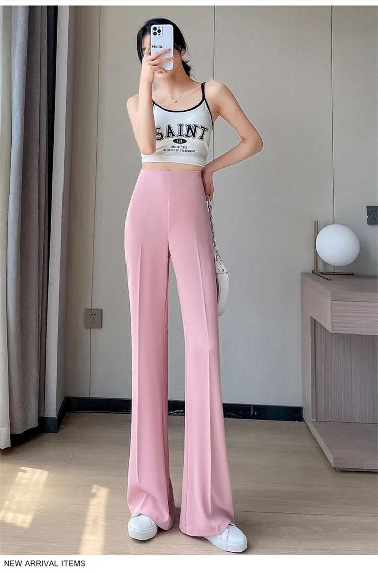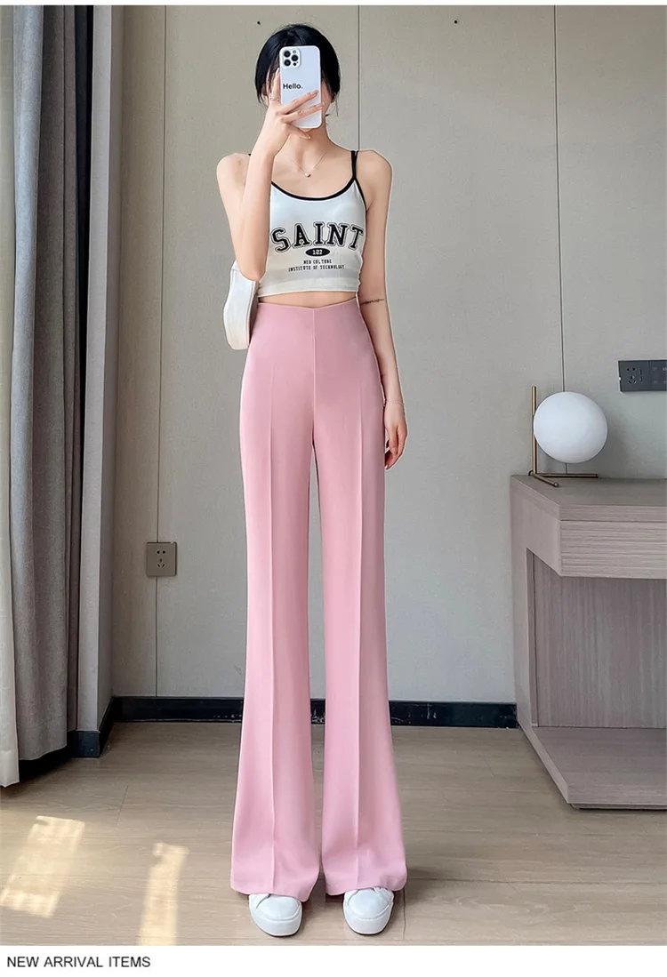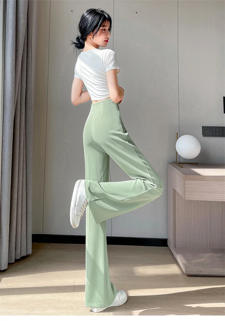 Znbbw 2023 Summer Thin Drape Ice Silk Pants Women Simplicity Straight Long Trousers Womens Office Lady Casual Suit Pants