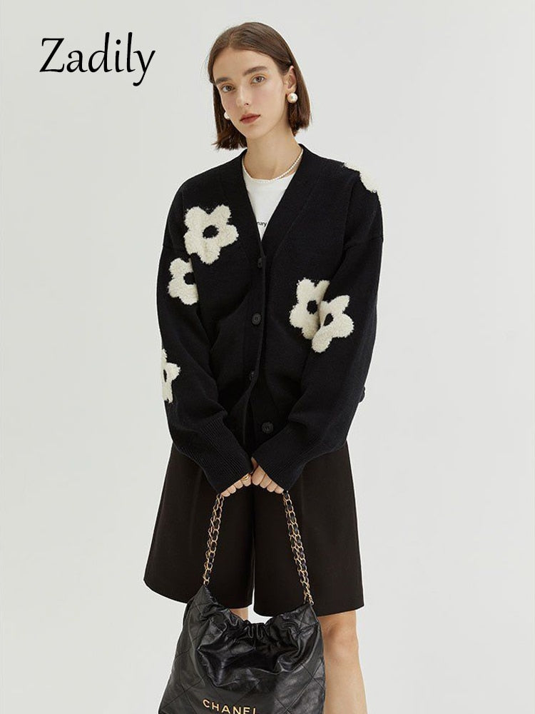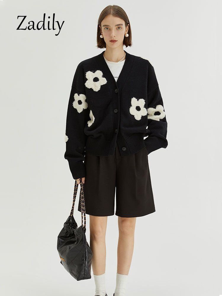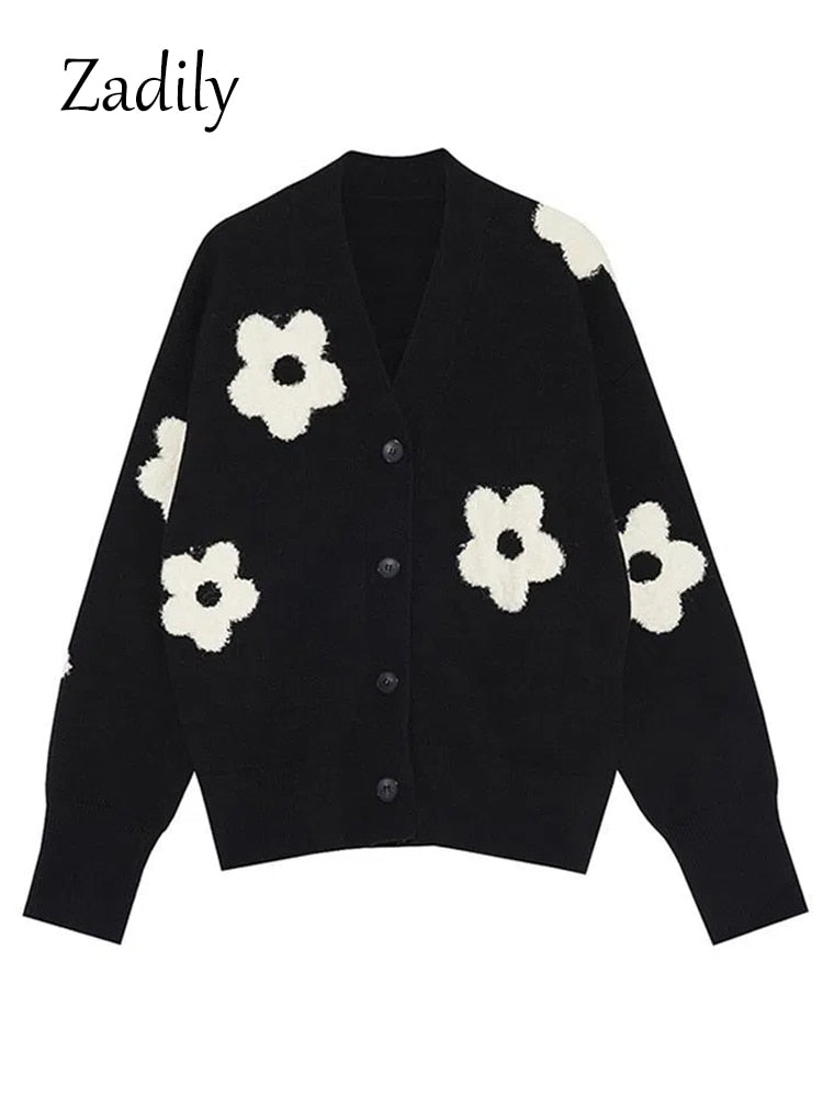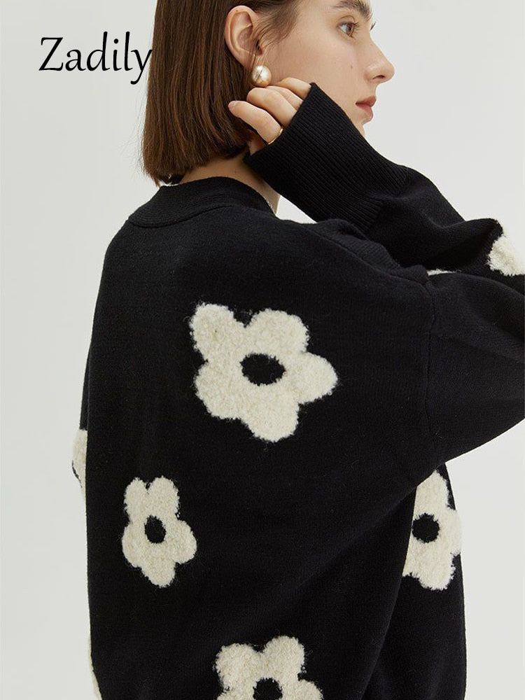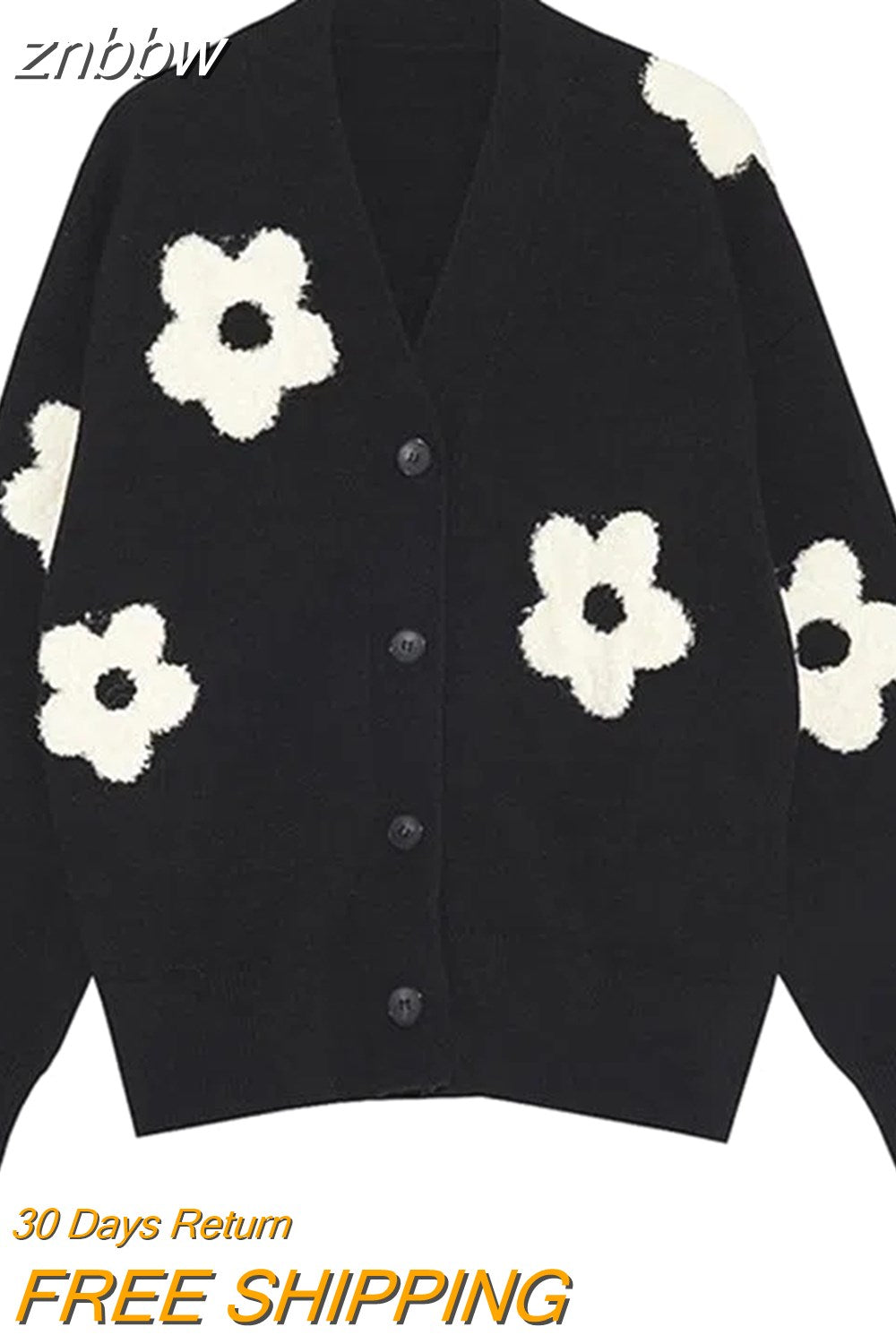 znbbw 2023 Winter New In Vintage Floral EmbroideryLoose Women Knit Cardigan Korea Style Button Up Ladies Sweater Coat Clothing