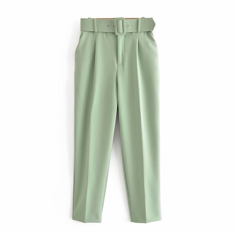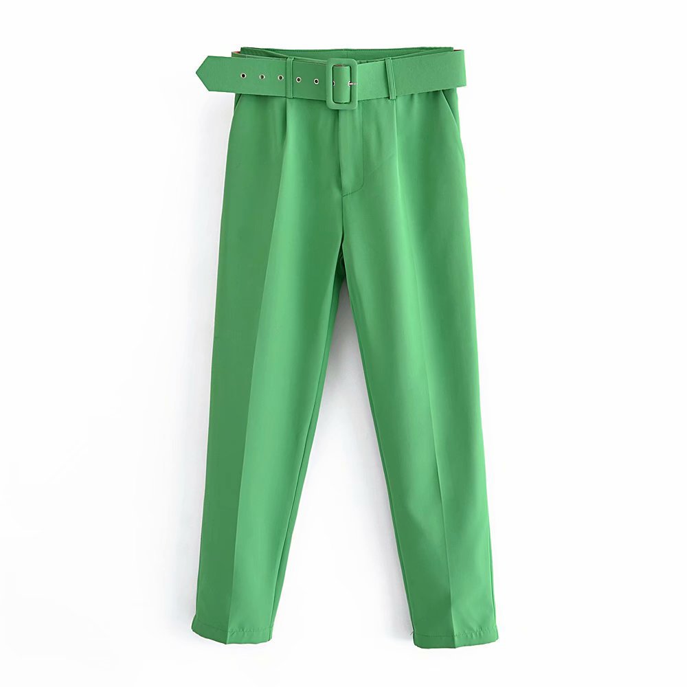 Znbbw 2024 New Pleated Multi-Color Harlan Pants Leisure Solid-Color Women's Pants Belt