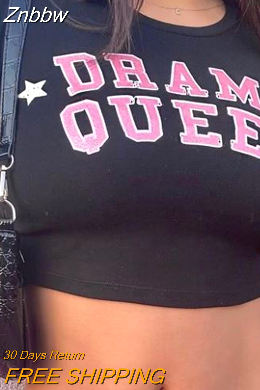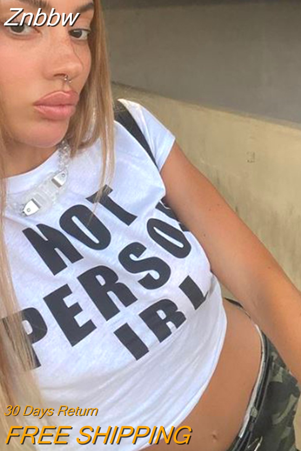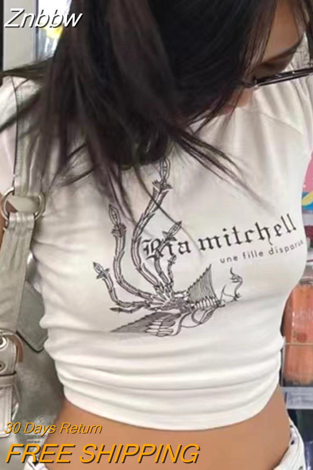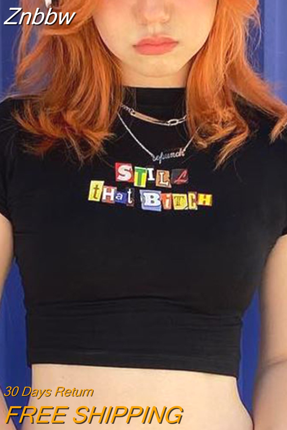 Znbbw Aesthetic Sexy Crop Top Letter Graphic Print Short Sleeve T-shirt 90s Punk E-girl Slim Streetwear Retro Grunge Women Clothes