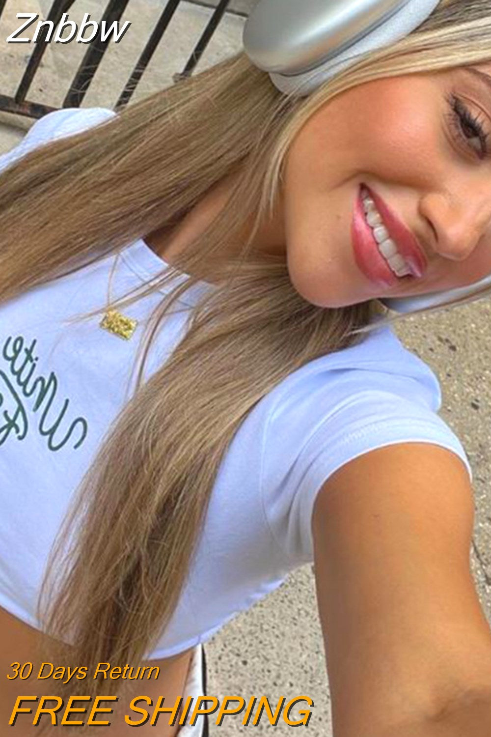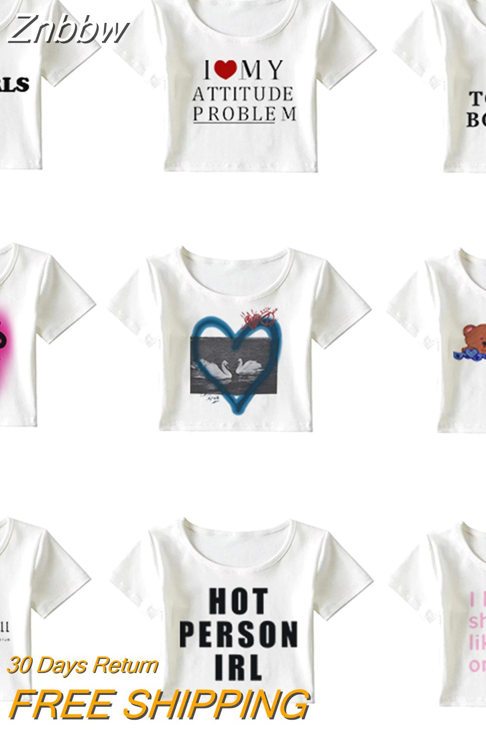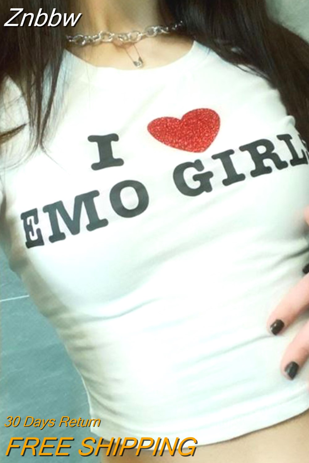 Znbbw Aesthetic Sexy Crop Top Letter Graphic Print Short Sleeve T-shirt 90s Punk E-girl Slim Streetwear Retro Grunge Women Clothes