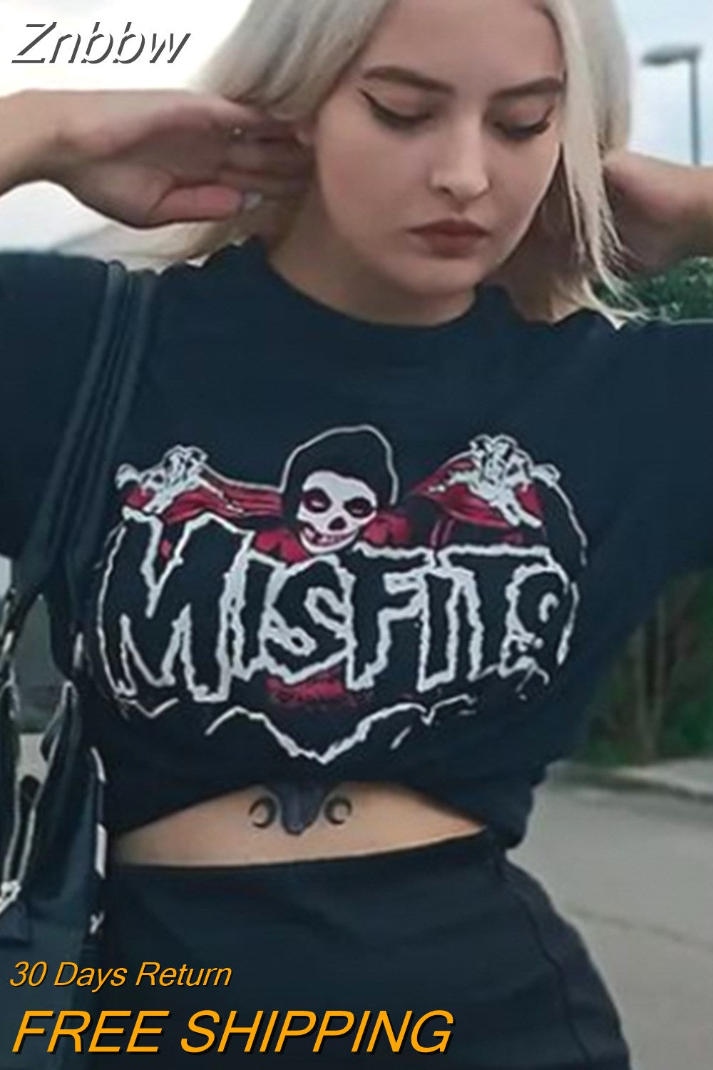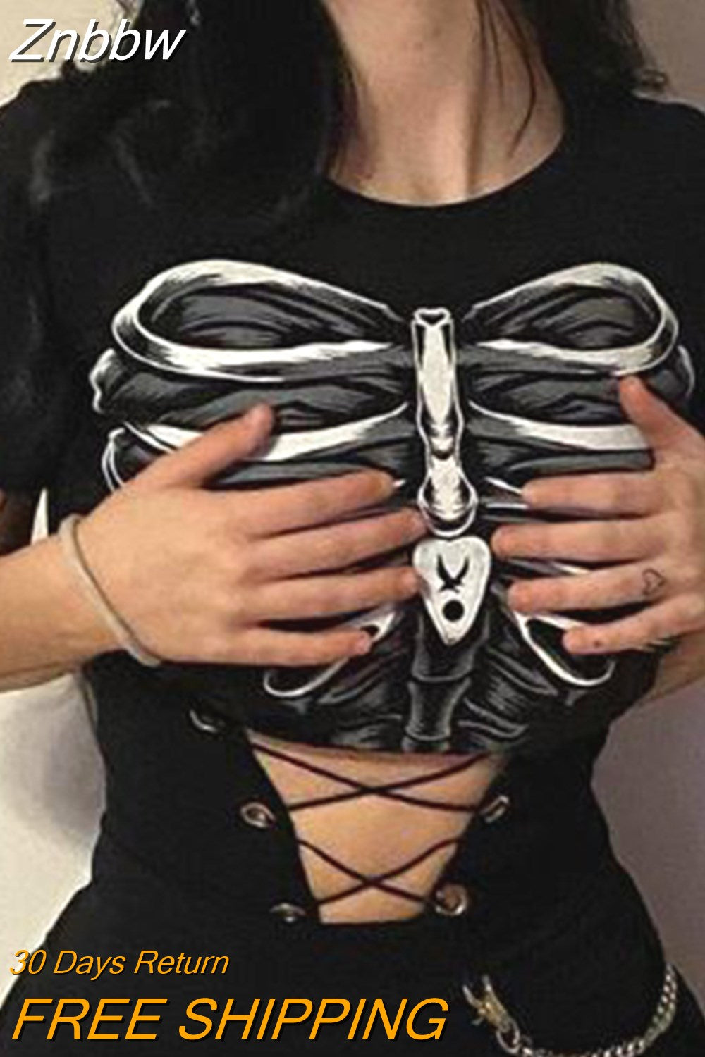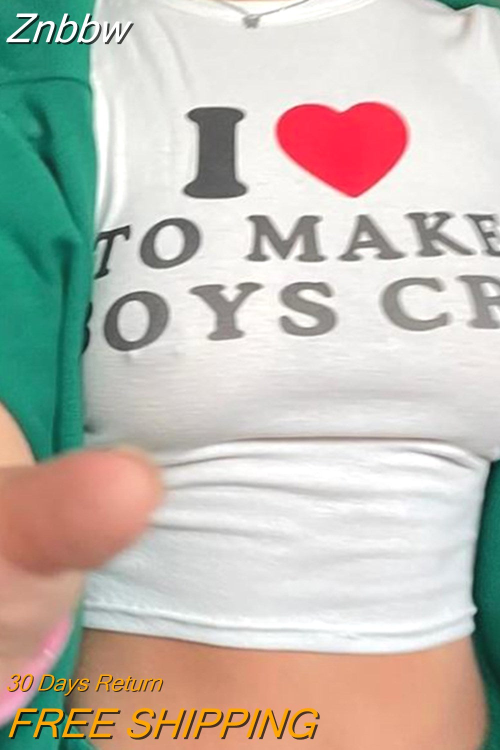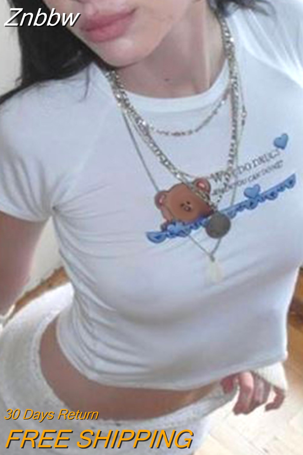 Znbbw Aesthetic Sexy Crop Top Letter Graphic Print Short Sleeve T-shirt 90s Punk E-girl Slim Streetwear Retro Grunge Women Clothes