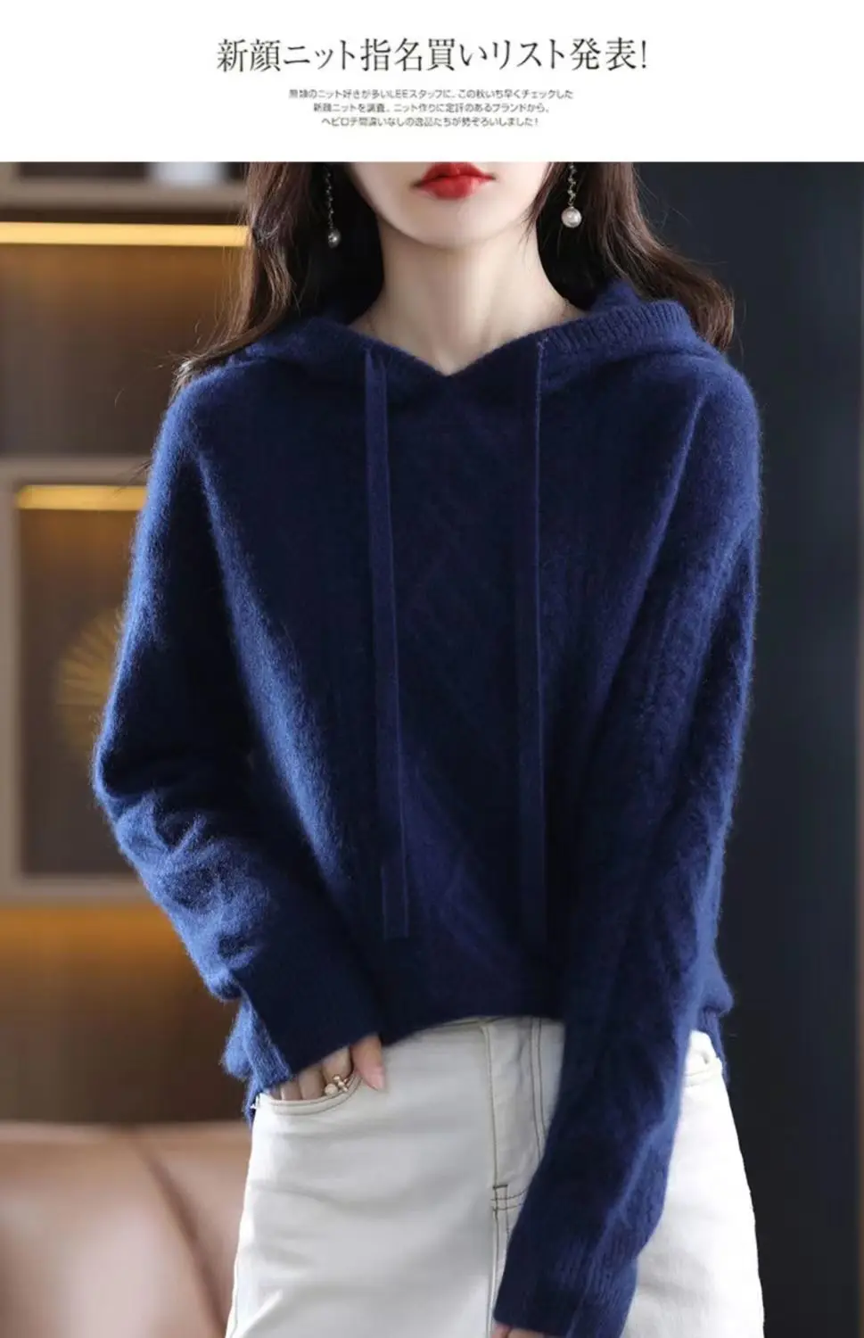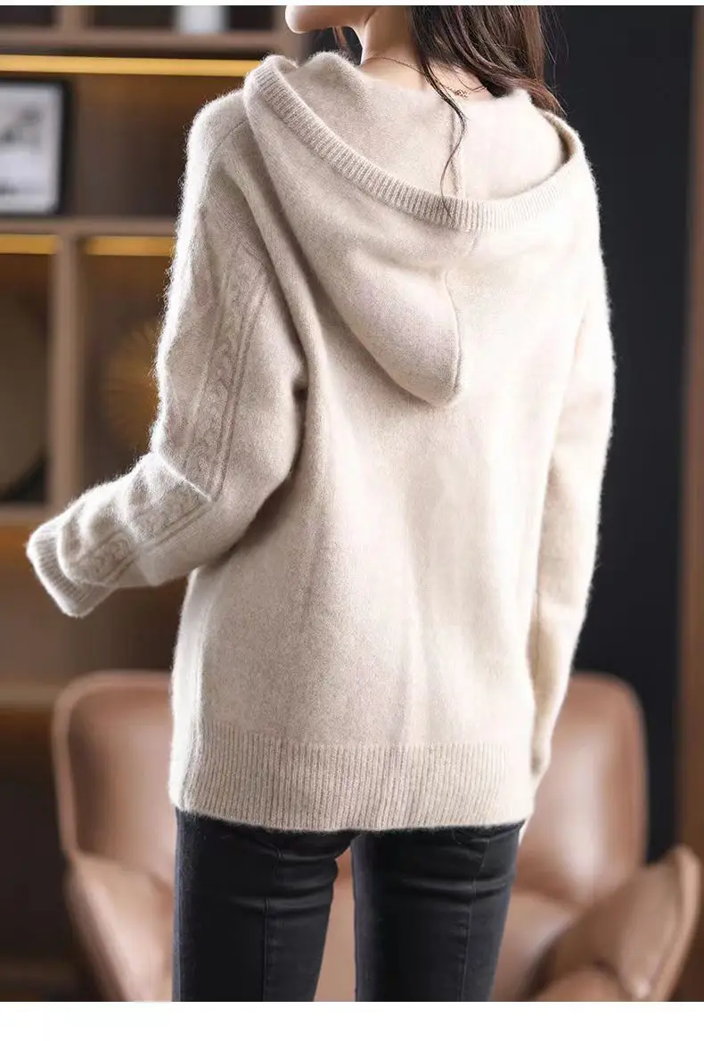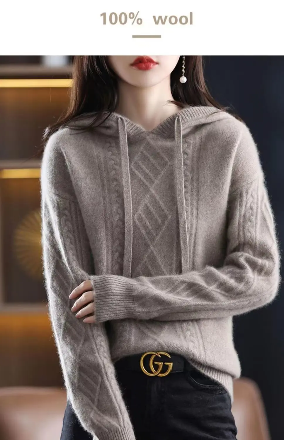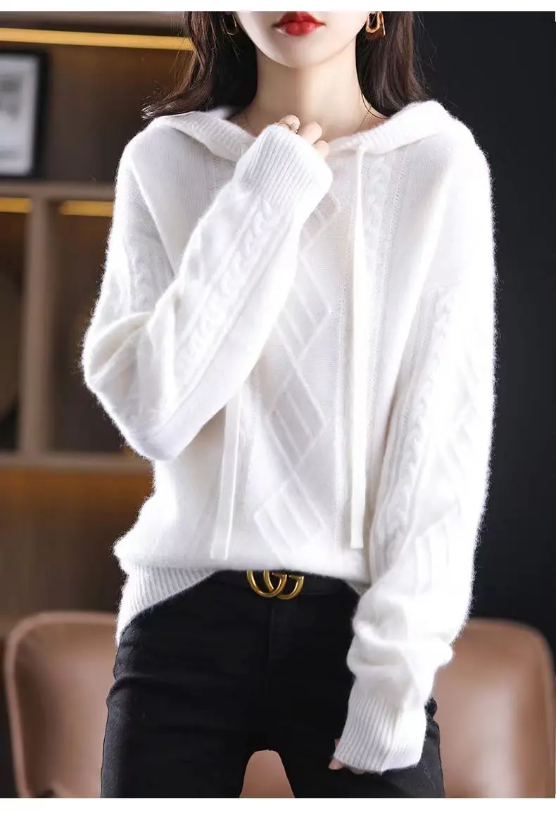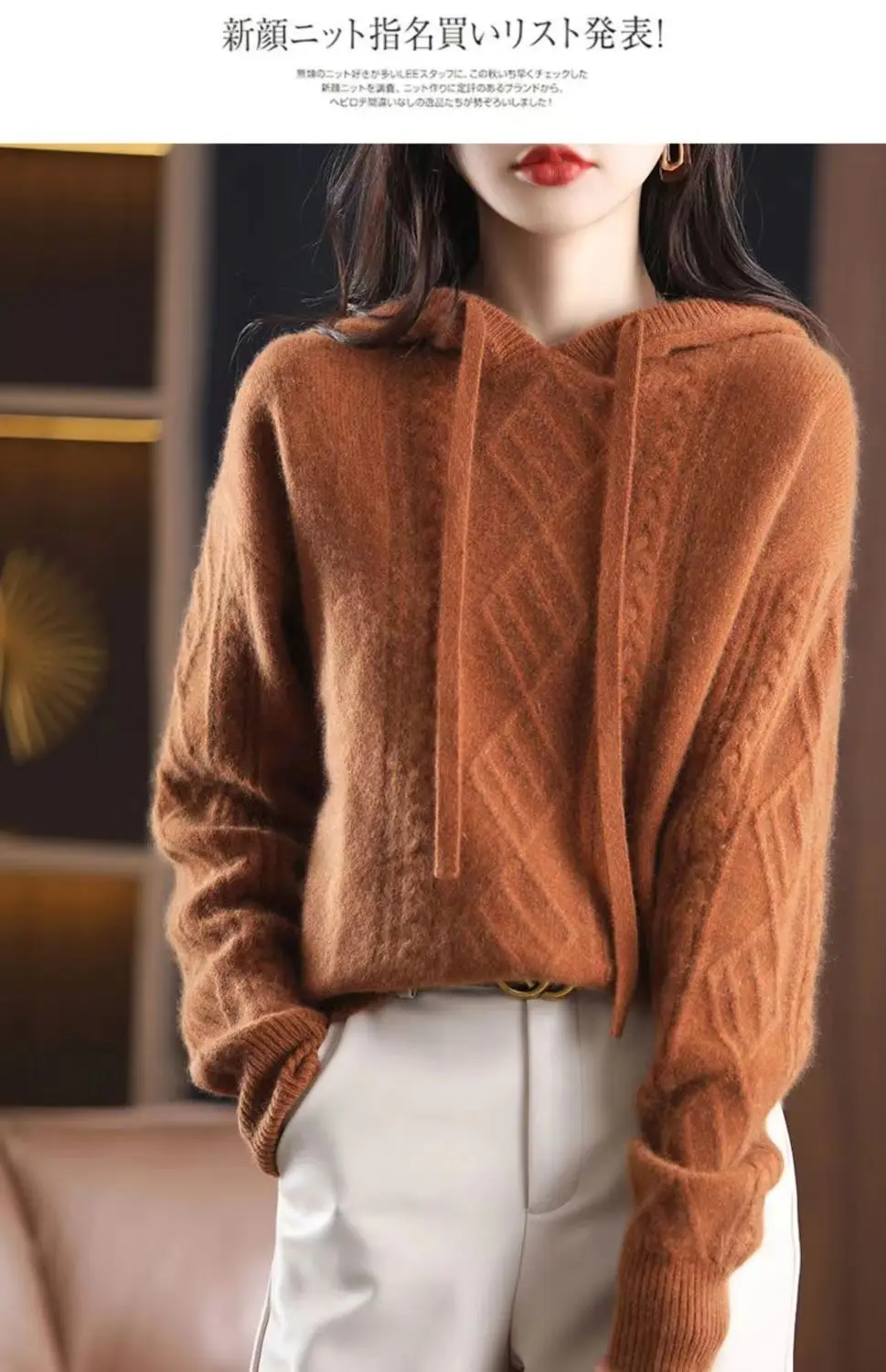 Znbbw autumn and winter 2024 hooded knitwear fried dough twist sweater long sleeve women loose pullover knitting sweater
