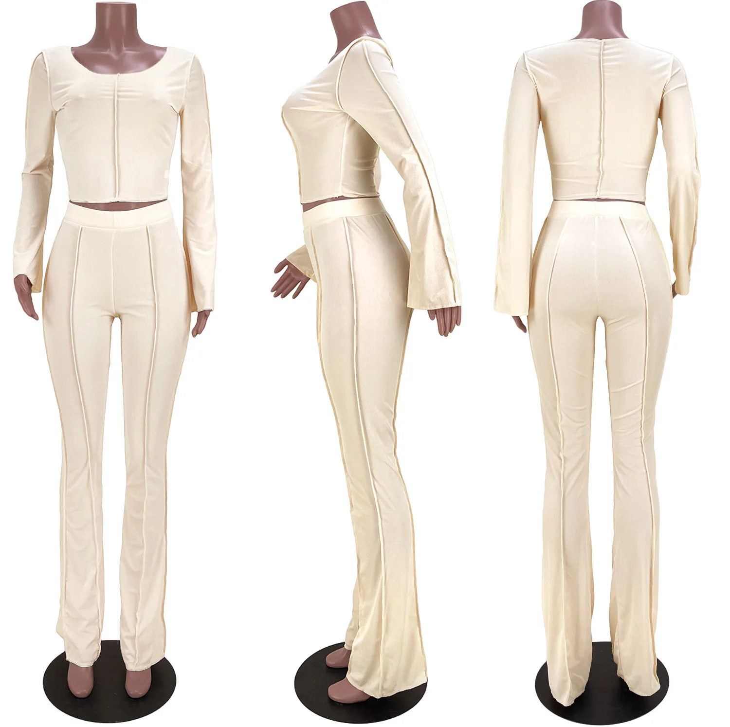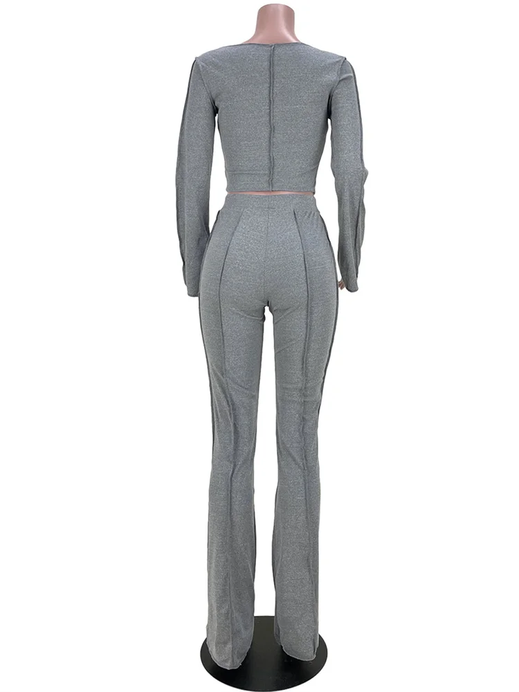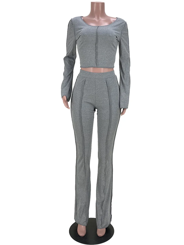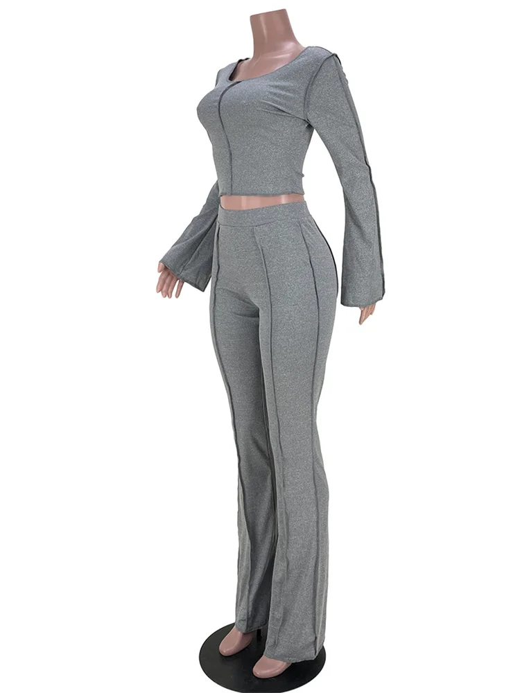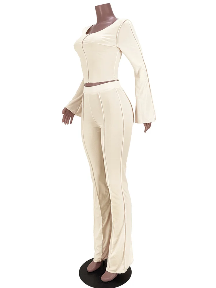 znbbw Autumn Solid Anti Traffic Line 2 Two Piece Sets Casual Outfit For Women 2023 Casual Crop Top And Flare Pants Set Female