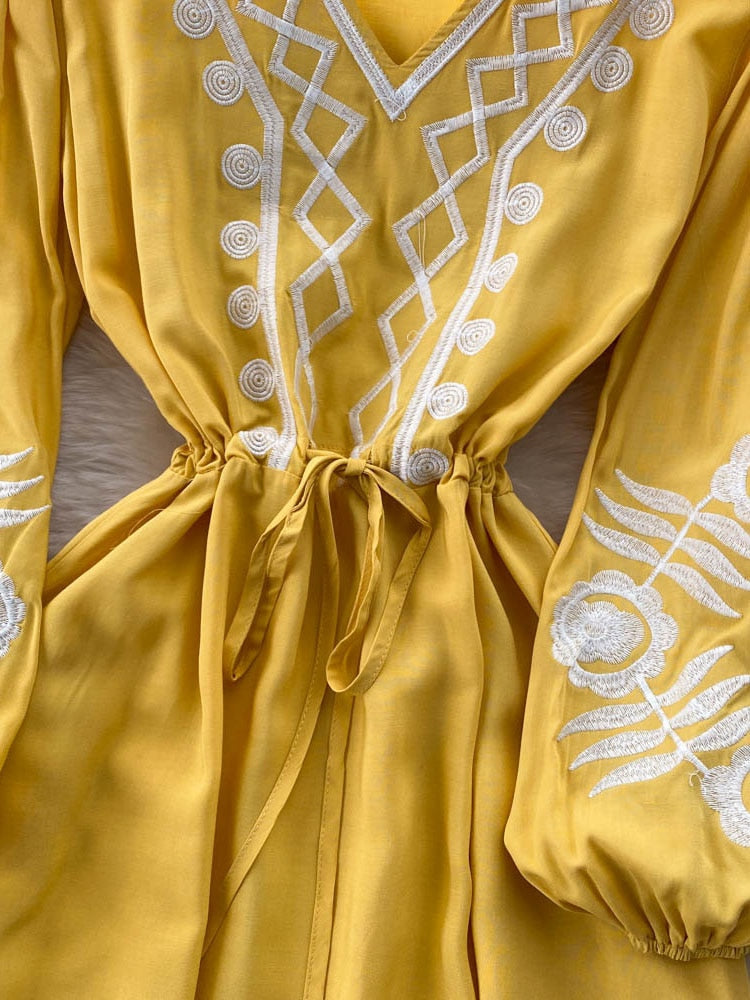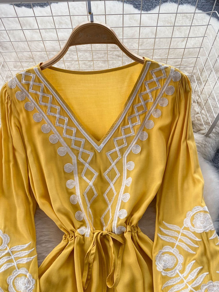 Znbbw Autumn Waist Slim Embroidery Temperament V-neck Dress Female Hepburn Style Lantern Sleeve Black Long Vestidos Women D1570