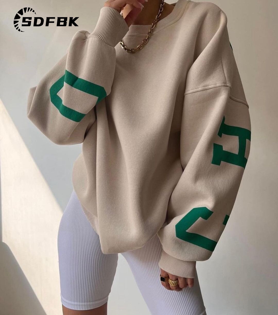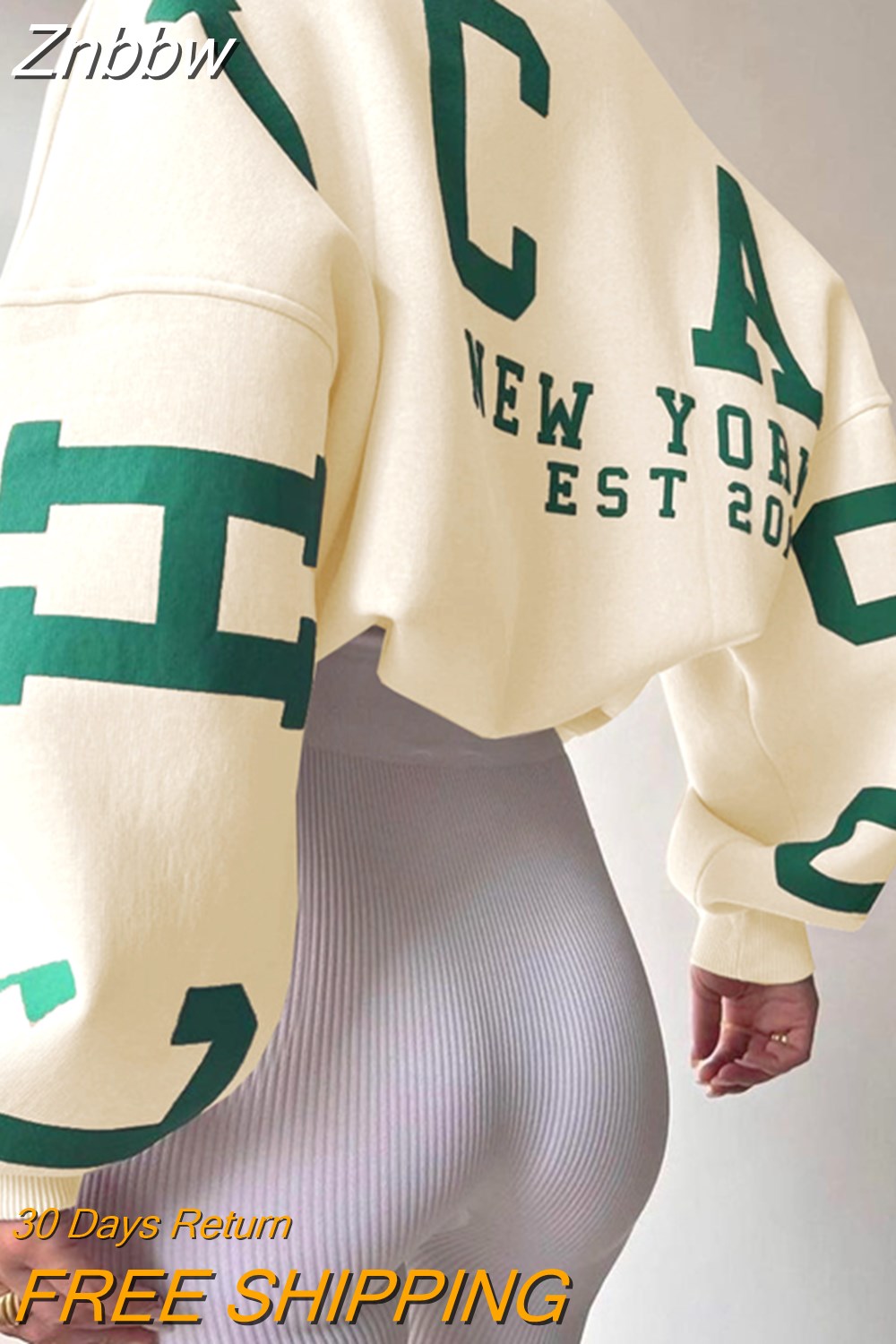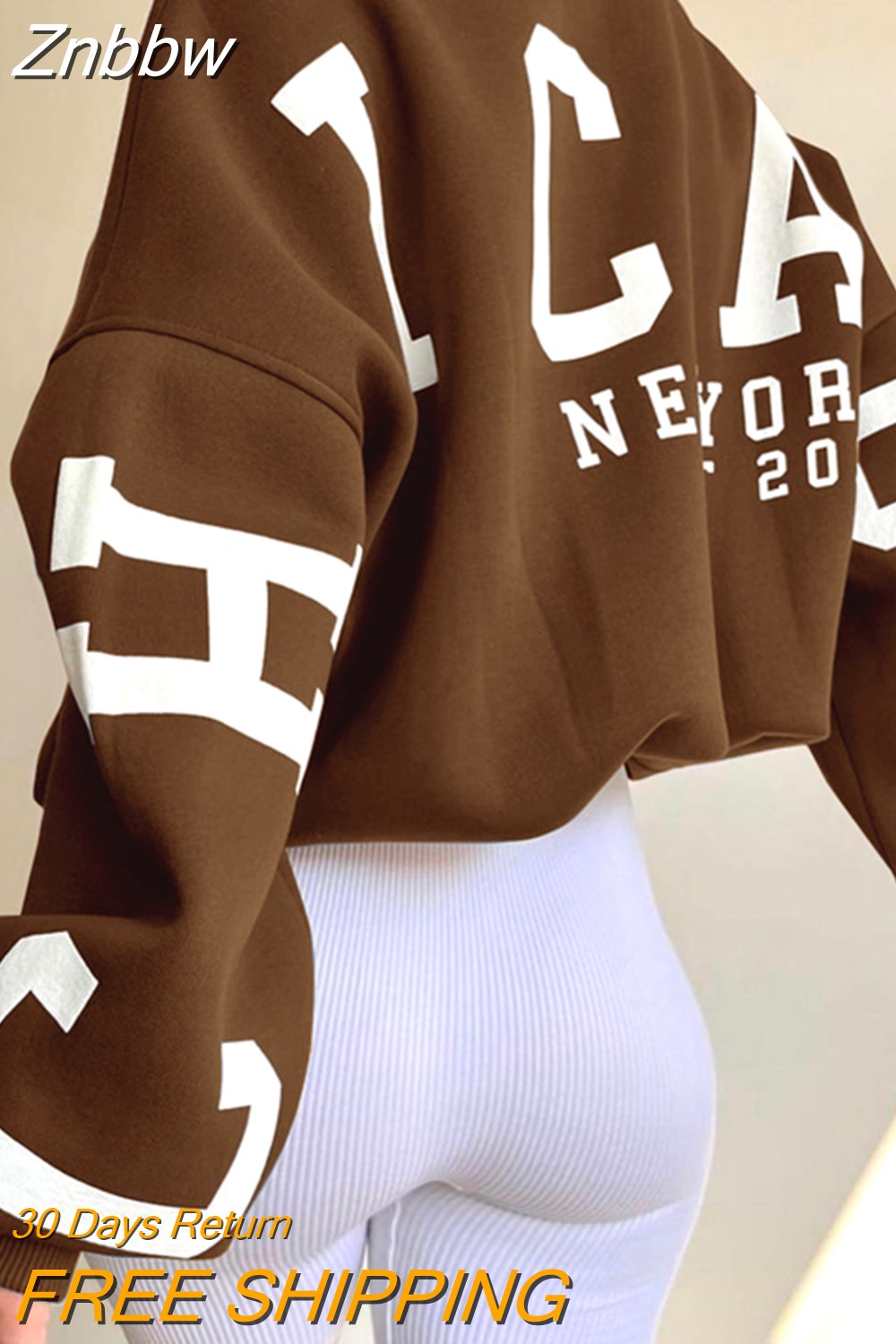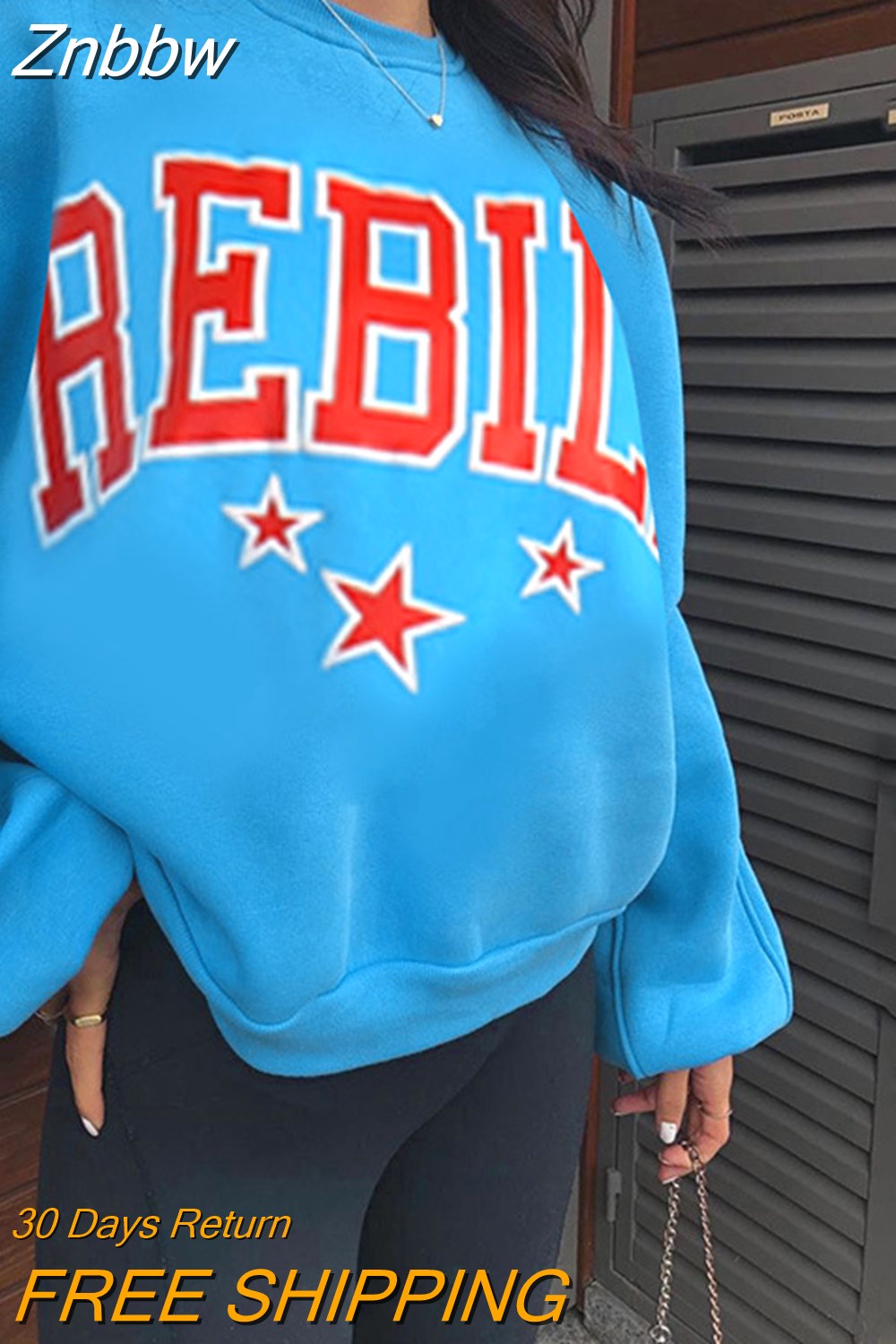 Znbbw Autumn Winter Fleece Sweatshirts Streetwear Y2K Harajuku Loose Long Sleeve Pullover Casual Letter Print O Neck Thick Top