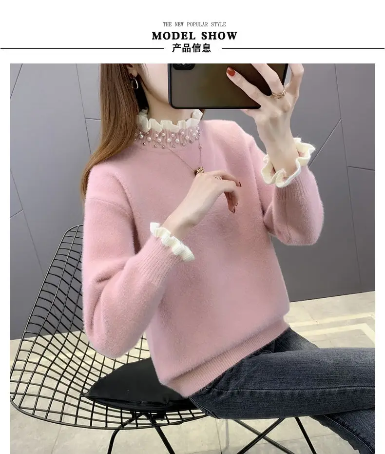 Znbbw Autumn Winter Thick Sweater Women Knitted Ribbed Pullover Sweater Long Sleeve Fasion Slim Jumper Soft Warm Pull Femme