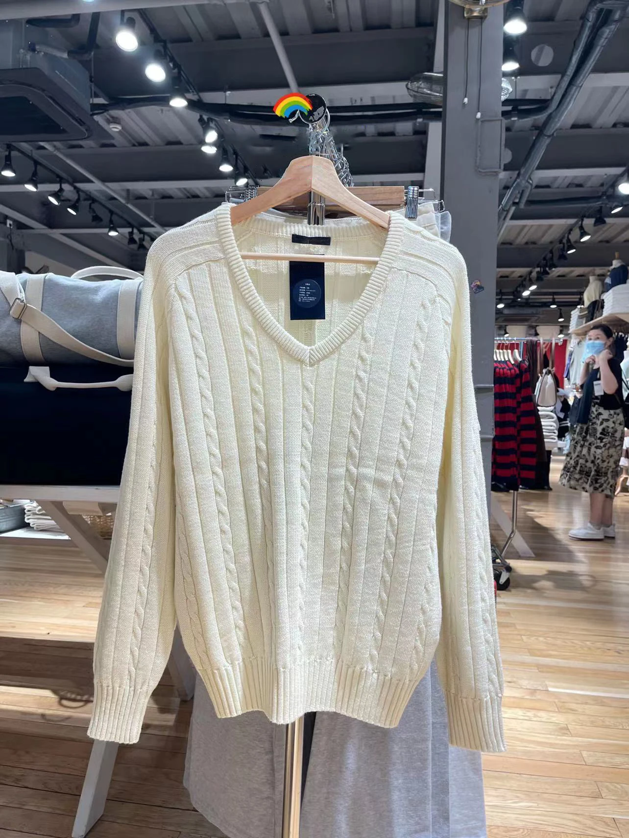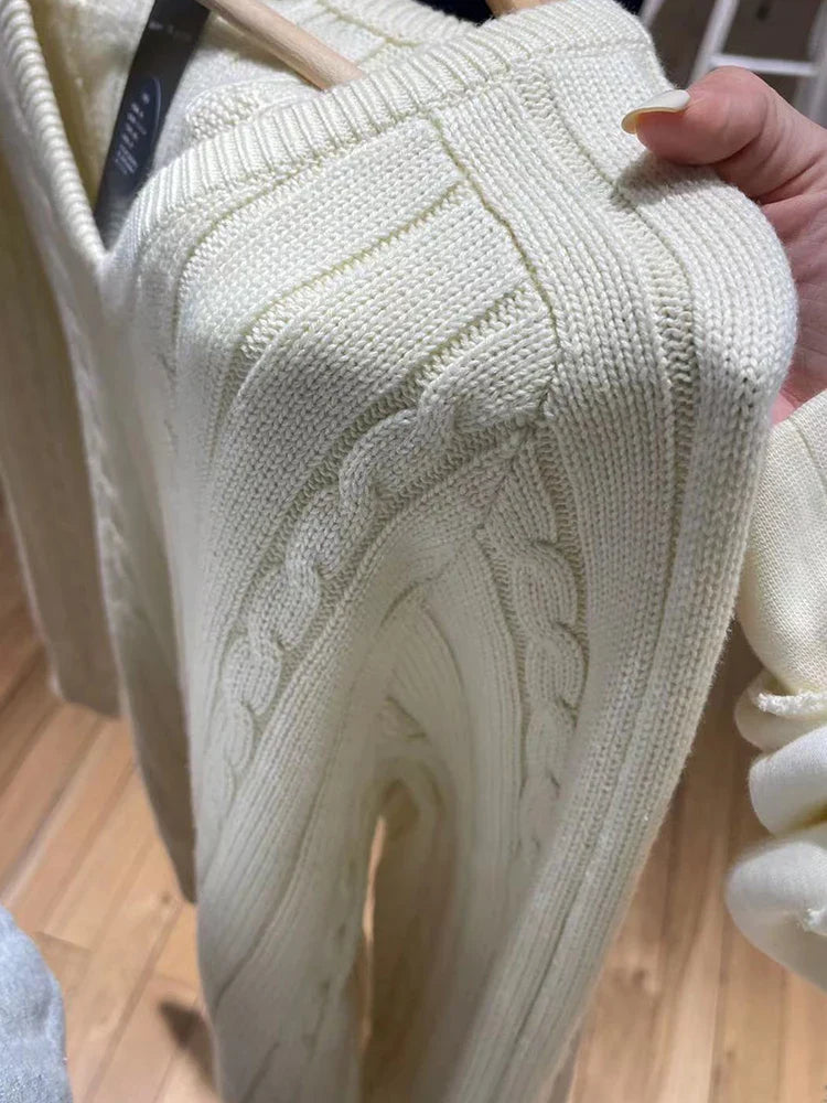 Znbbw Beige Knitted V Neck Sweater Women Sweet Preppy Style Twisted Flower Cotton Loose Jumper Harajuku Solid Autumn Sweaters