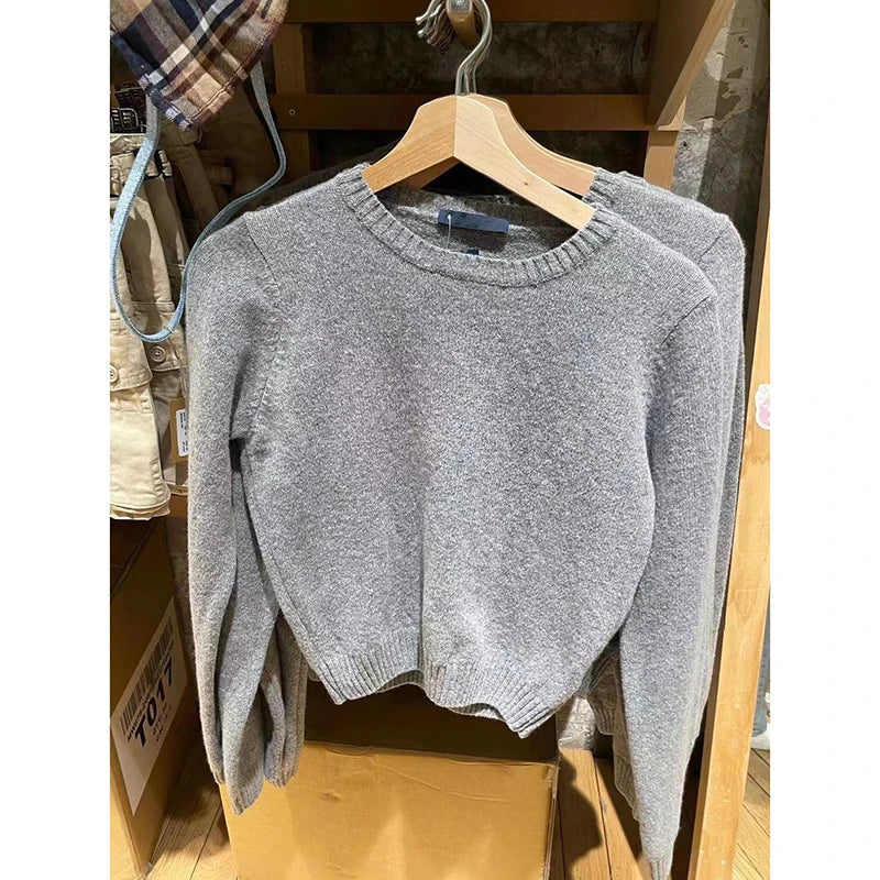 Znbbw Blue Slim Knitted Sweater Women Cute Preppy Style Round Neck Autumn Cotton Jumper Vintage Simple Solid Sweaters Tops Y2k