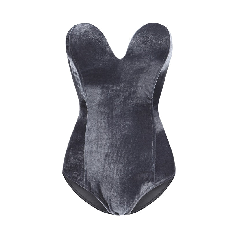 Znbbw Burgundy Strapless Velvet Sexy Bodysuit Women Sweetheart Bodycon Backless Lace Up Body 2023 V Neck Party Bodysuits