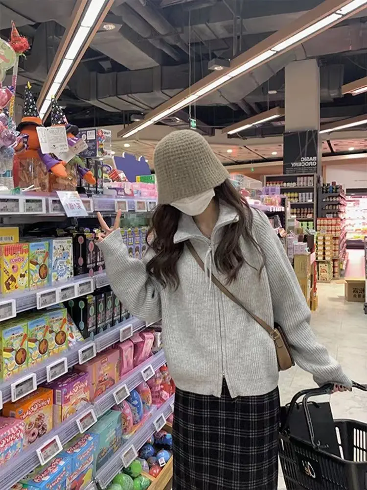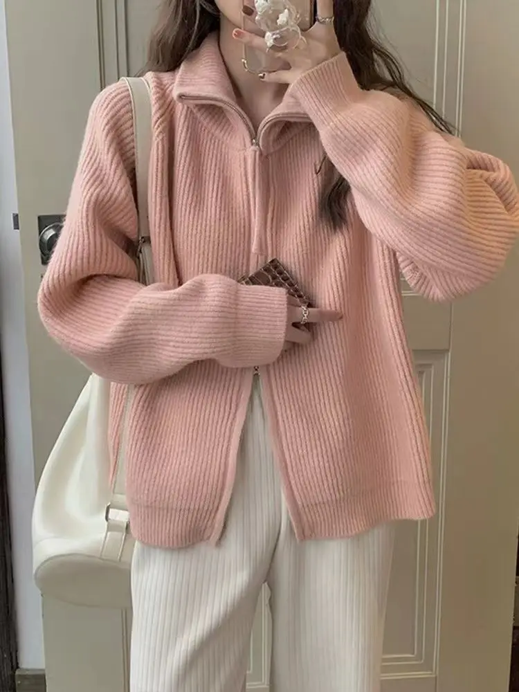 Znbbw cardigan sweater female spring and autumn lapel zipper sweater long sleeve solid women foreign outerwear cardigan female