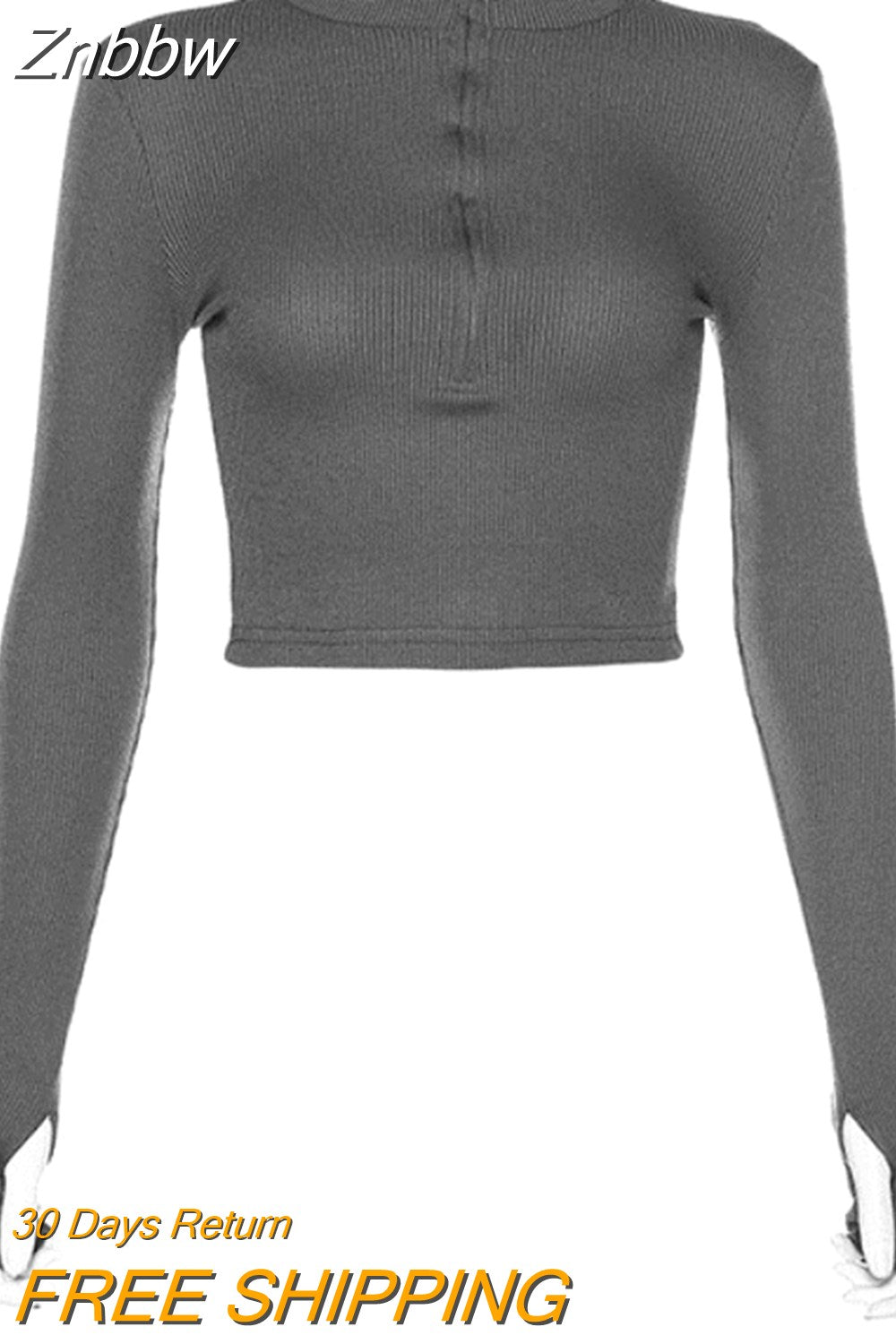 Znbbw color casual T-shirt women long sleeves turtleneck crop tops sexy simple style party club 2023 spring summer new