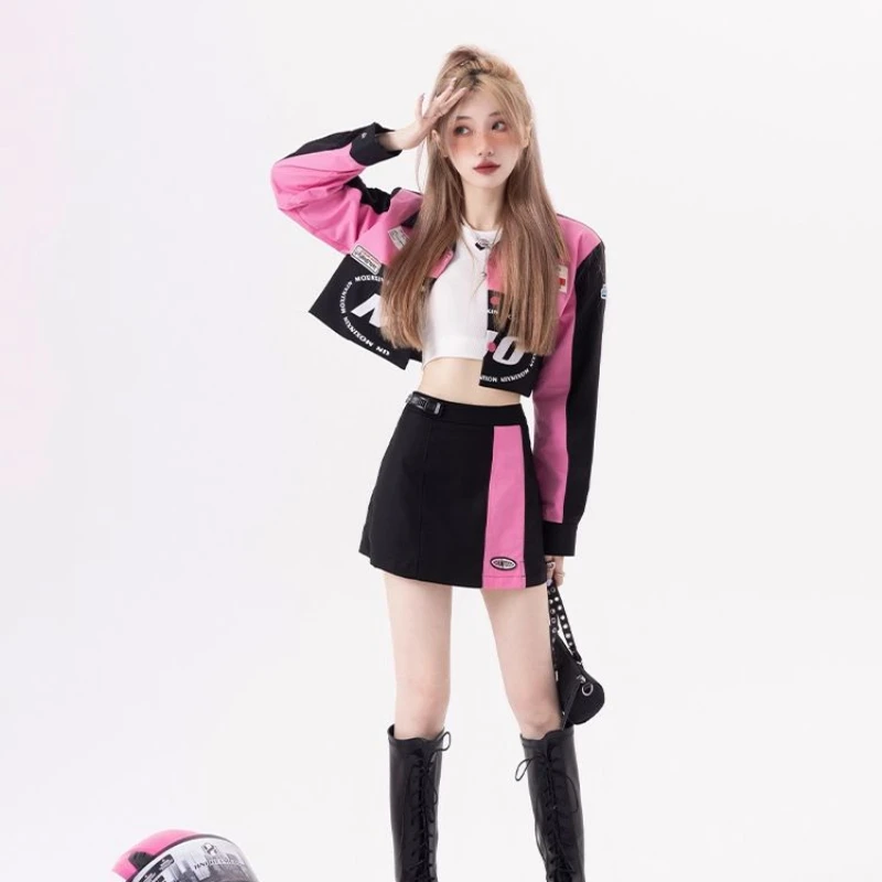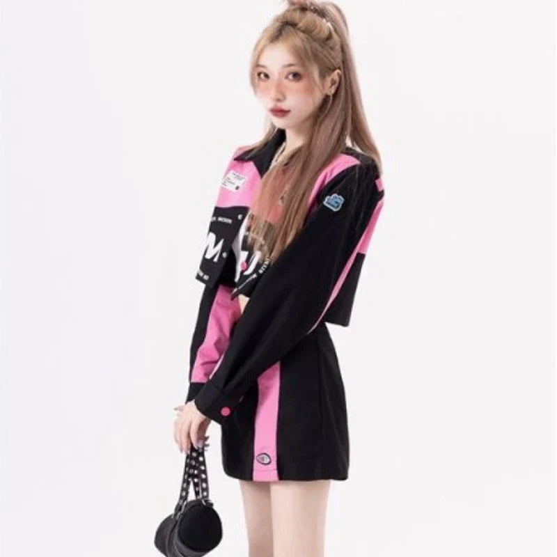 Znbbw Color Matching Sets Harajuku Punk Gothic Spring Autumn Two Piece Sets Womens Outifits Lettr Print Tops Mini Short Skirt