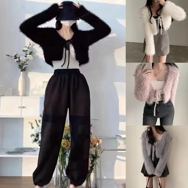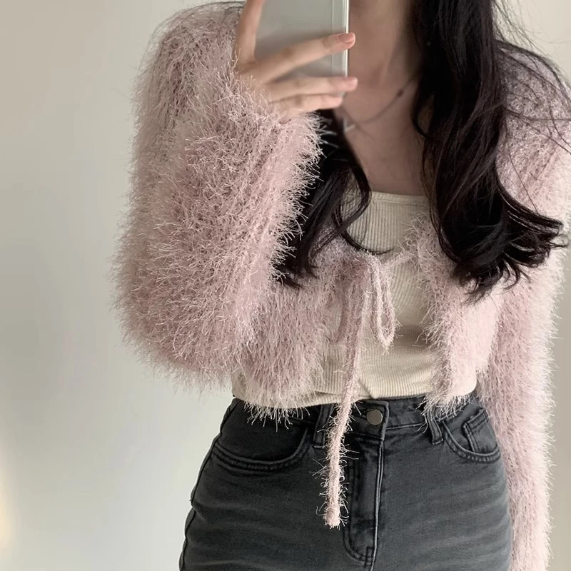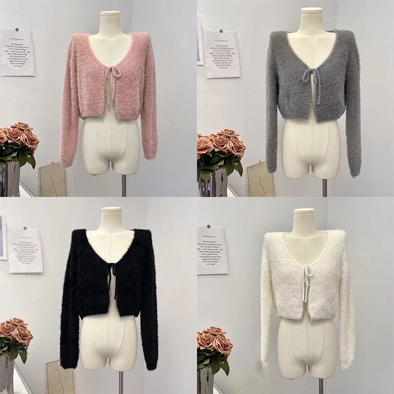 Znbbw color Sexy Mink velvet Loose fitting Knitted Women's top Sweater cardigan Autumn and winter Women's sweater