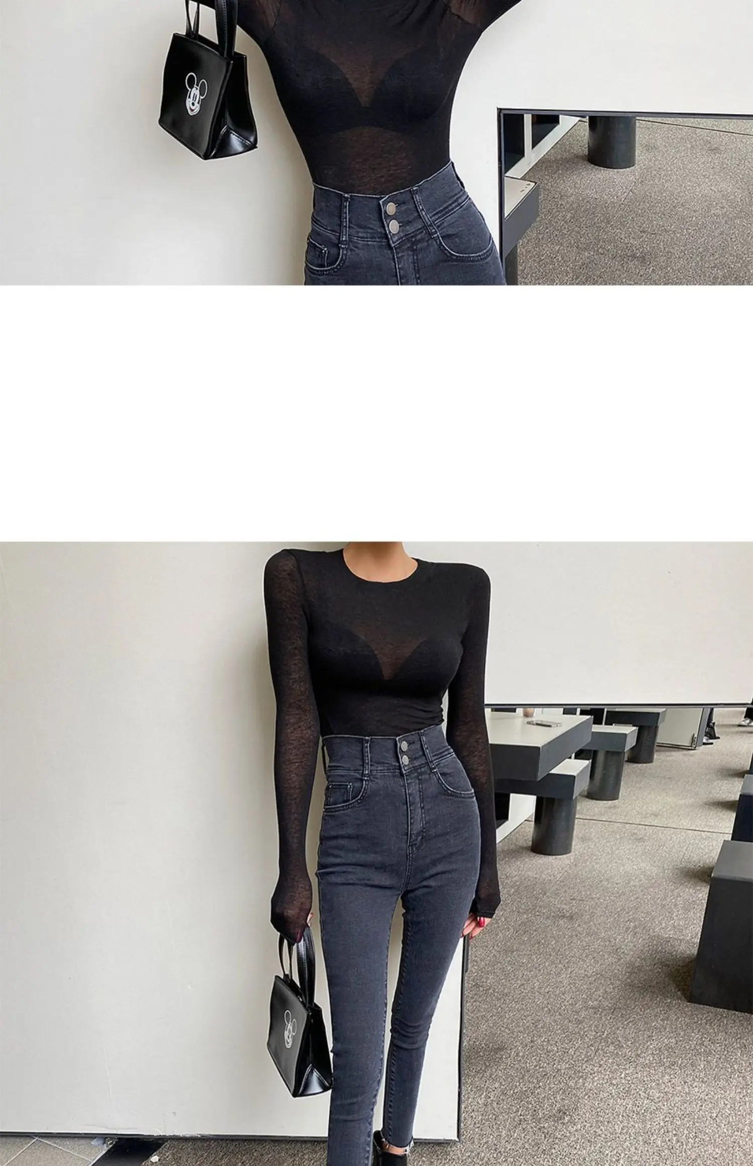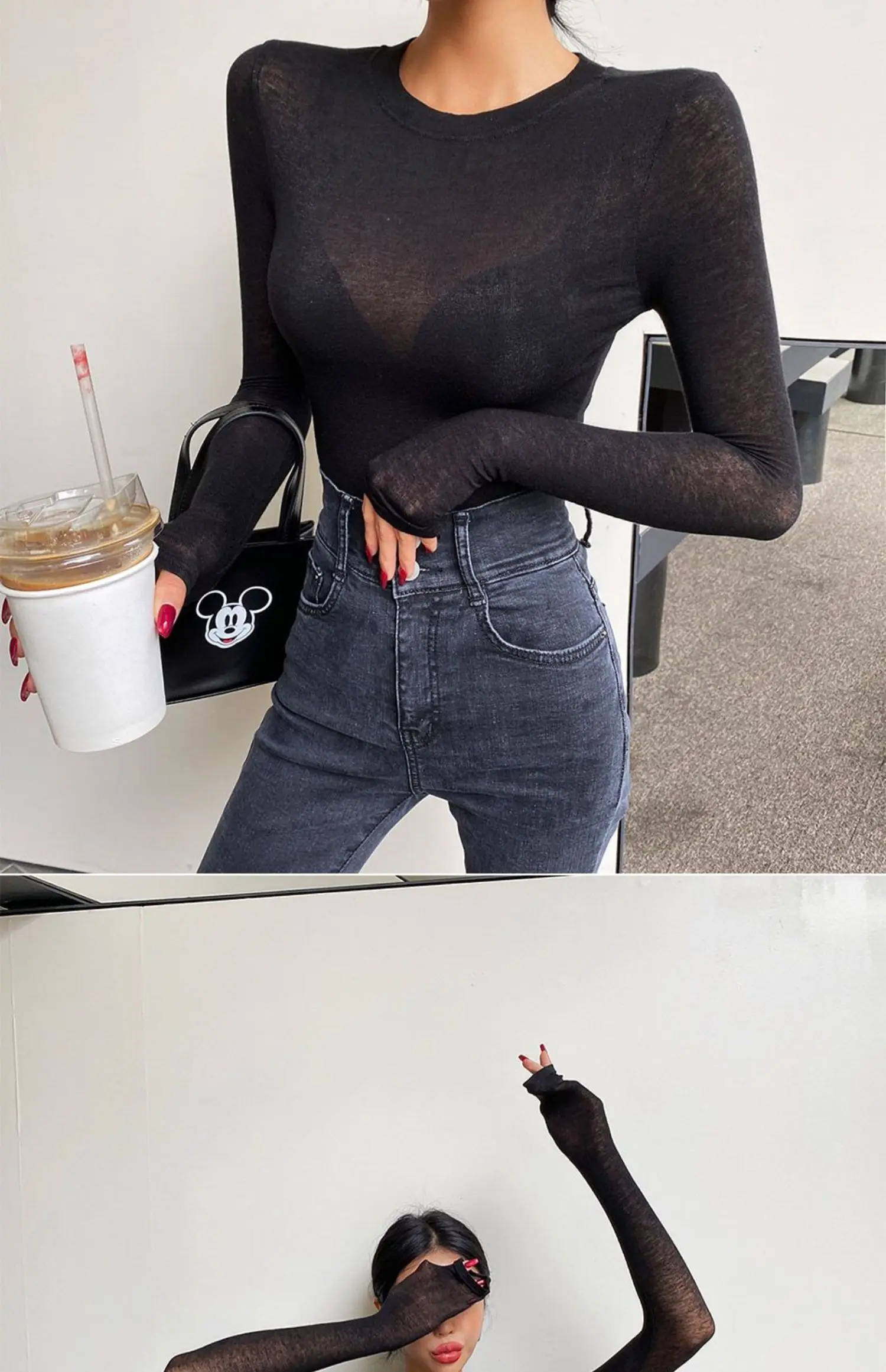 Znbbw Cotton Summer T Shirt Women Long Sleeves Tee Shirt High Elasticity Breathable Sexy Thin T-shirt see through Female Top