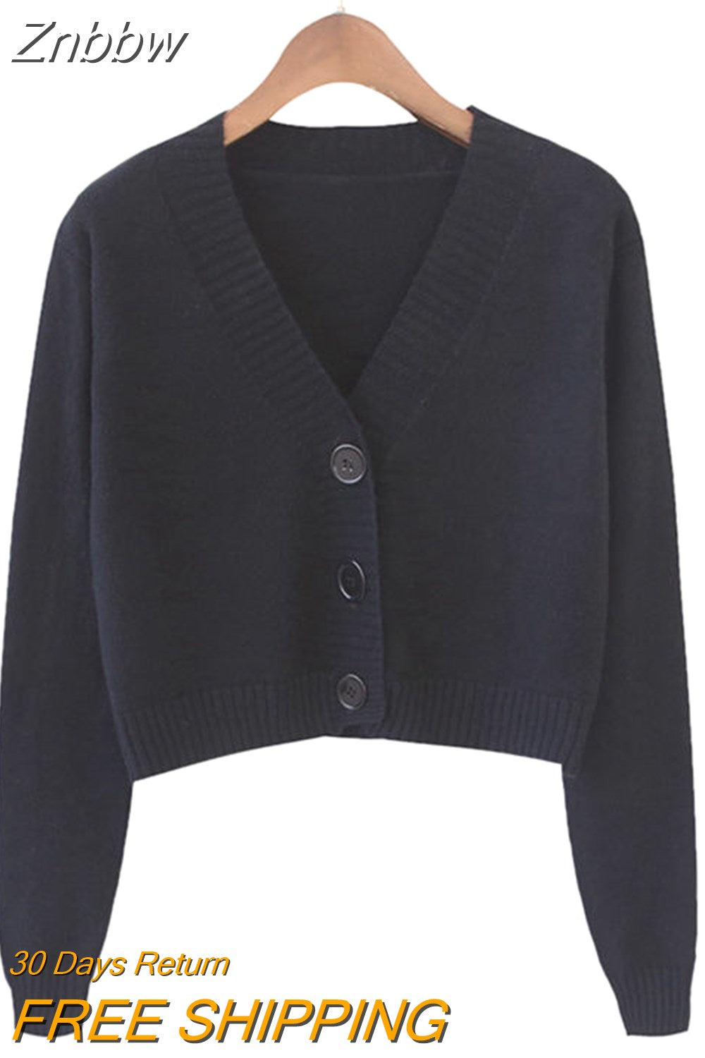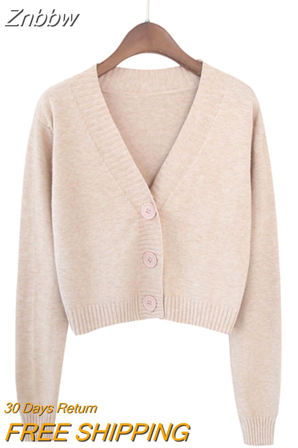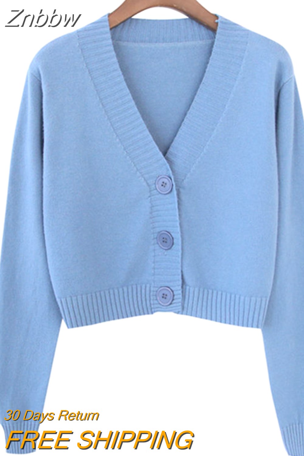 Znbbw Crop Cardigan Women Korean Short Sweater Long sleeve V neck Green Blue