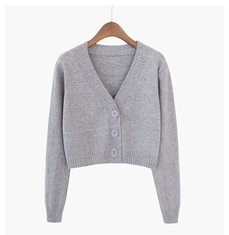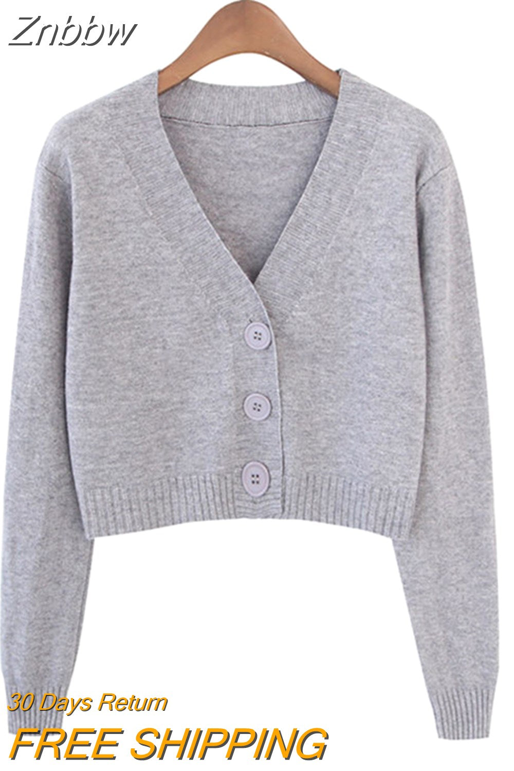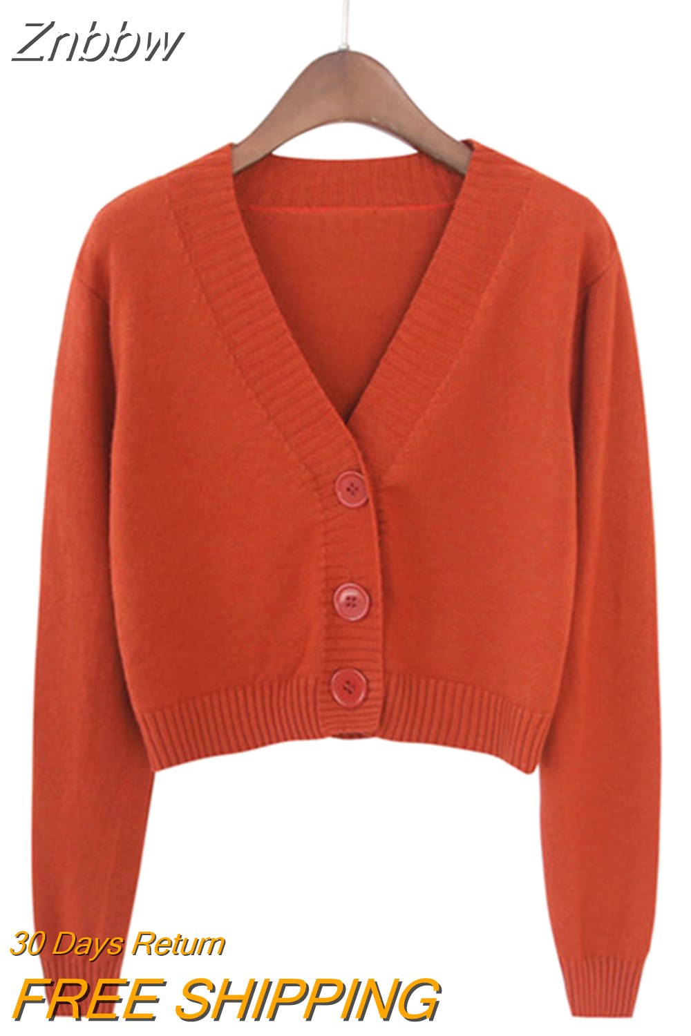 Znbbw Crop Cardigan Women Korean Short Sweater Long sleeve V neck Green Blue