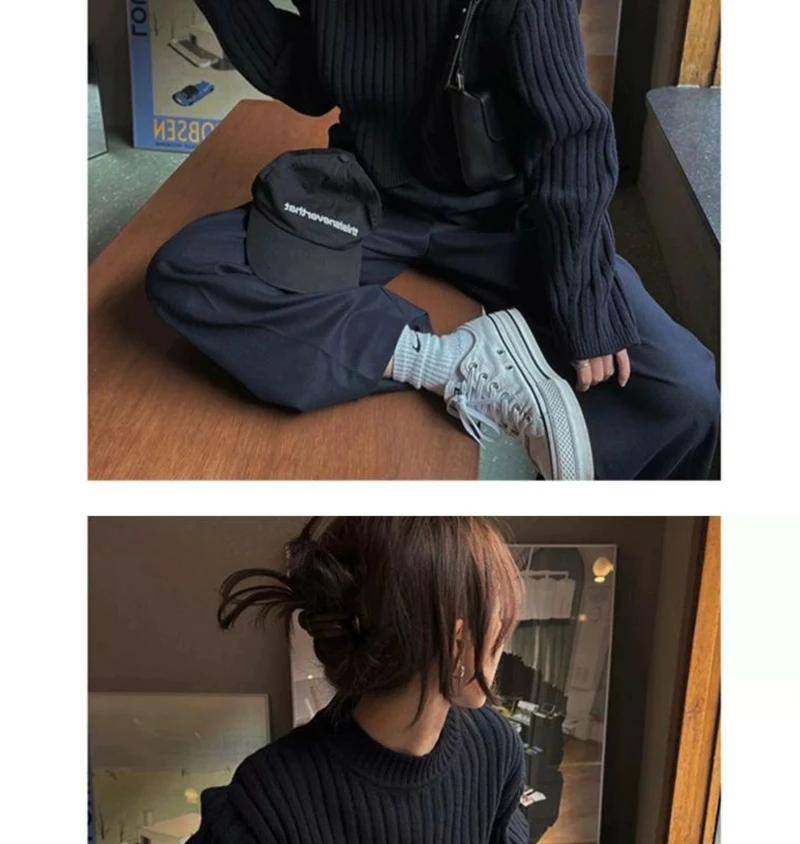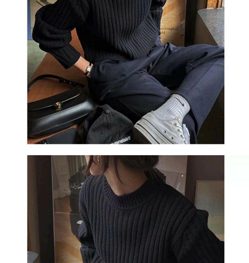 Znbbw Cropped Sweater Women Vintage Striped Knitted Pullovers Harajuku Korean Slim Knitwear Japanese Black Casual Jumper