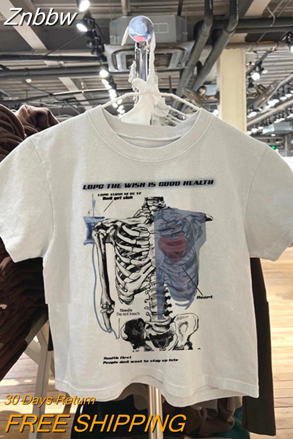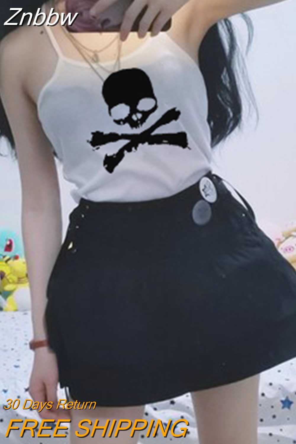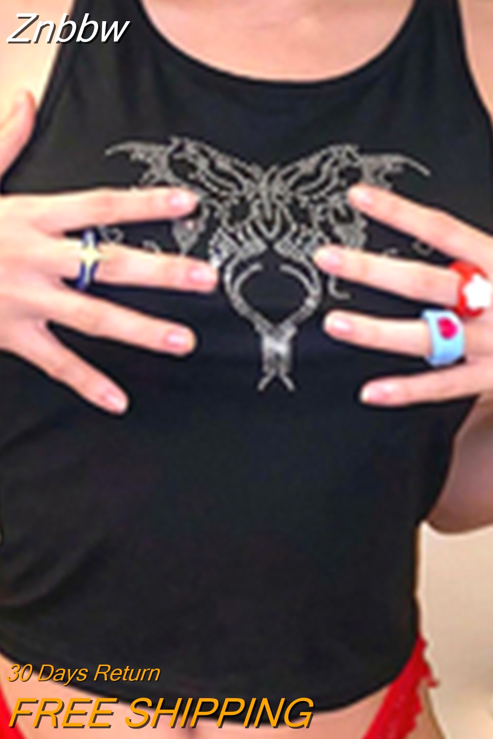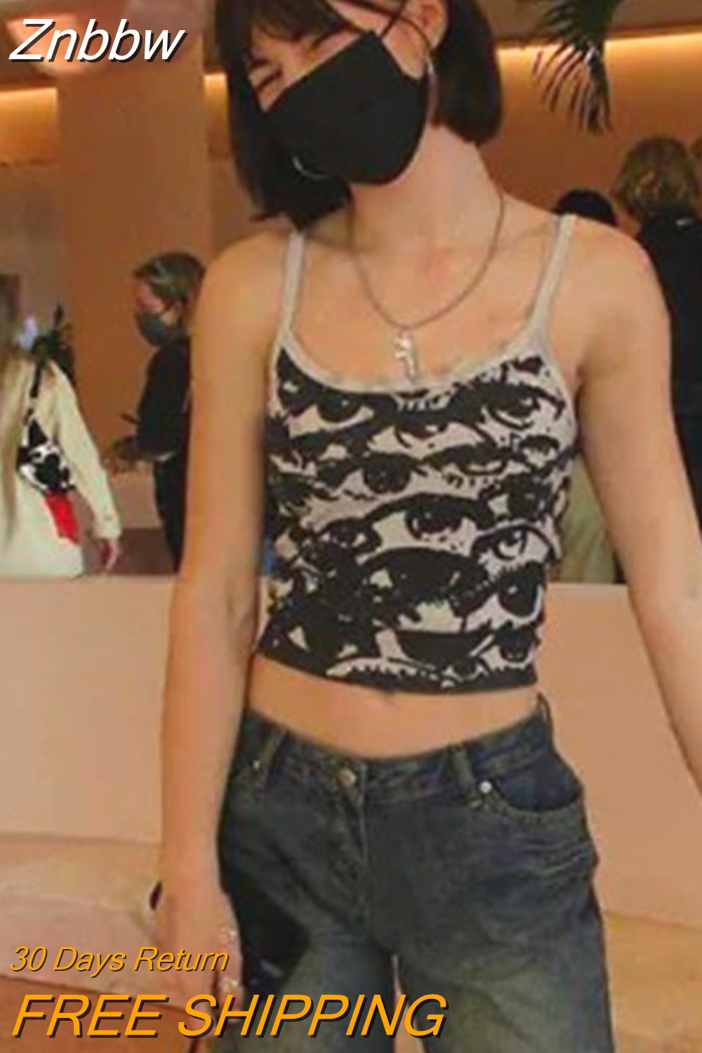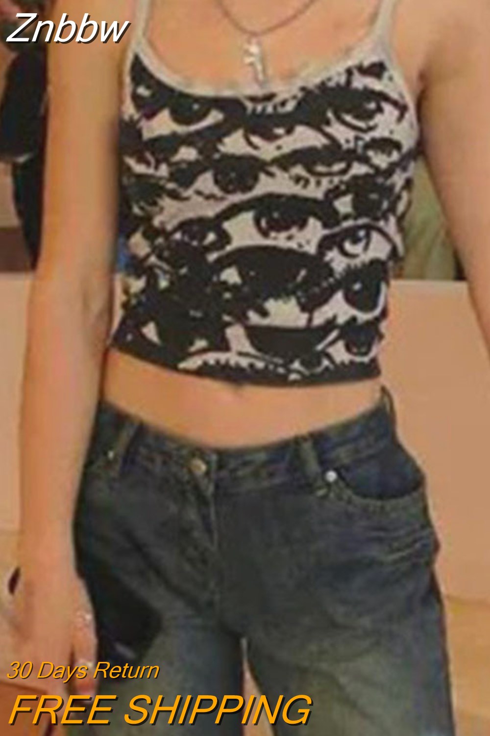 Znbbw Dark Vintage Streetwear t-shirt Gothic 90s Summer Slim Fit Women's Sports Top 2023 New Women's Statement Eye Print Camisole