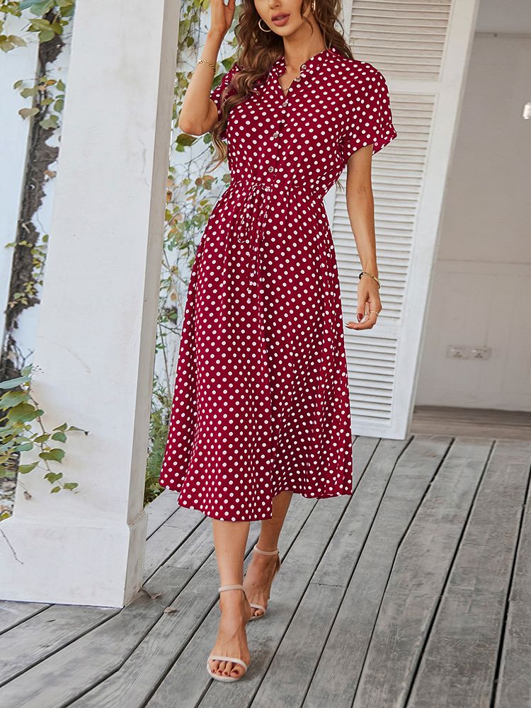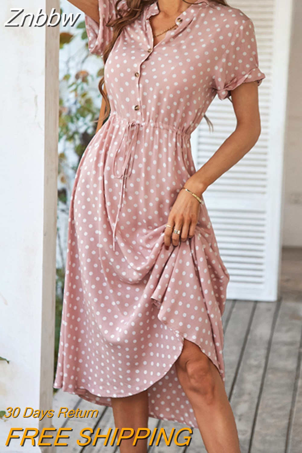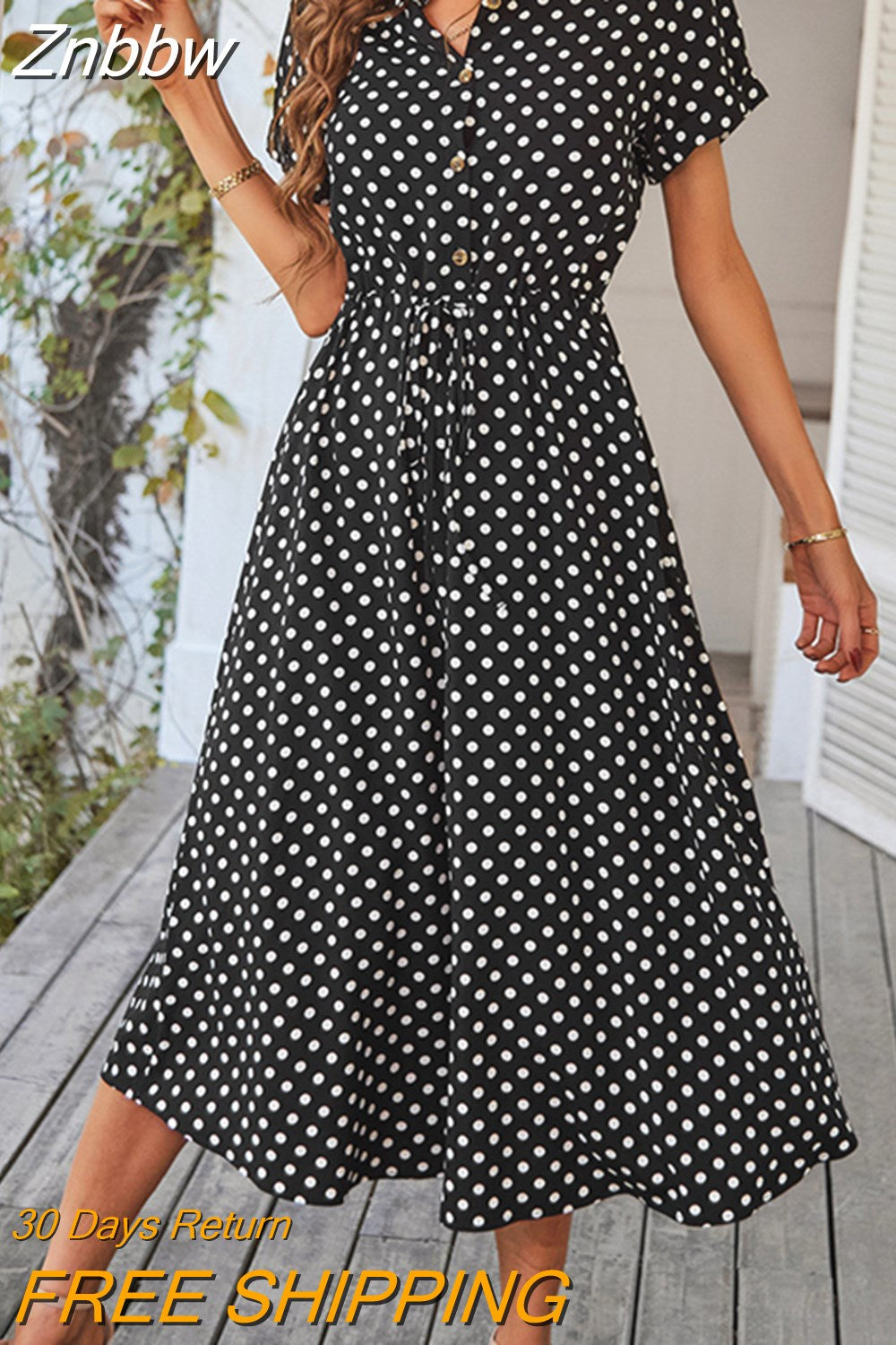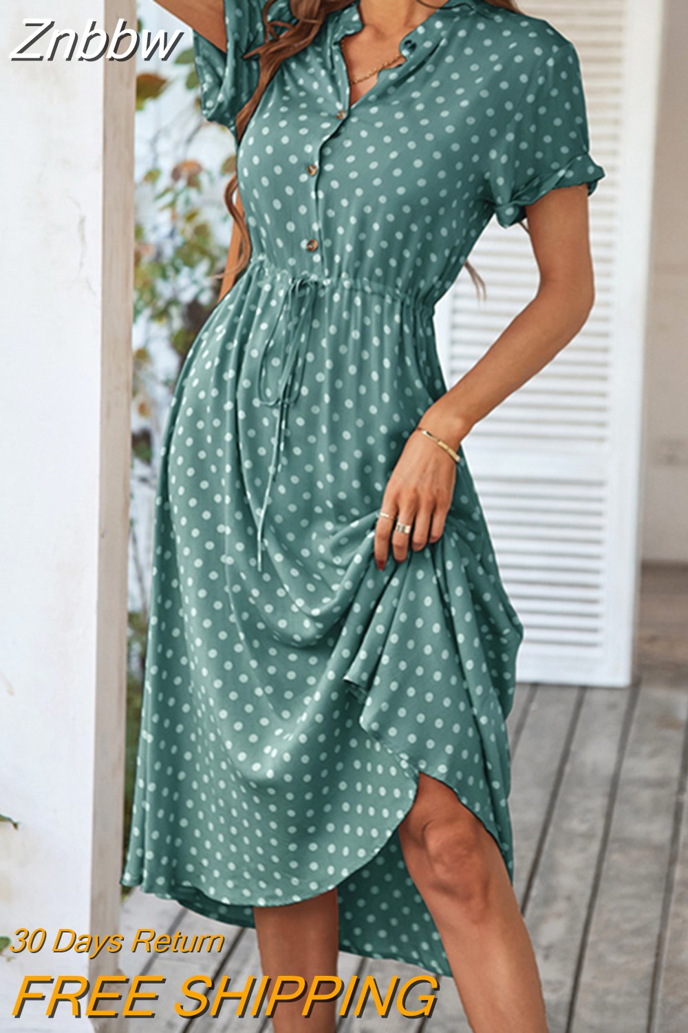Znbbw Dot Dress Women 2023 New Summer Casual V-Neck Button Short Sleeve Midi Dresses Female Holiday Boho Beach Dresses Vestidos
