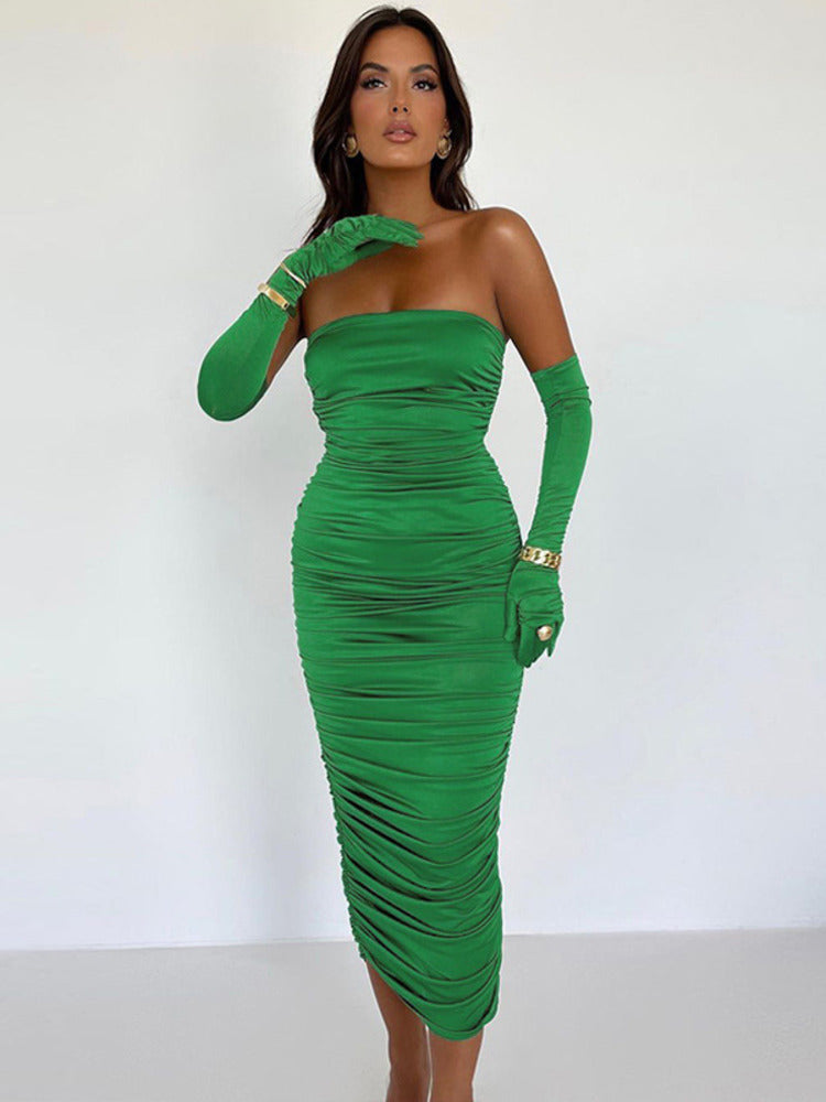 Znbbw Eelegant Off-shoulder With Sleeve Midi Dress Women Robe Fashion Strapless Backless Bodycon Long Dress Vestido Clubwear