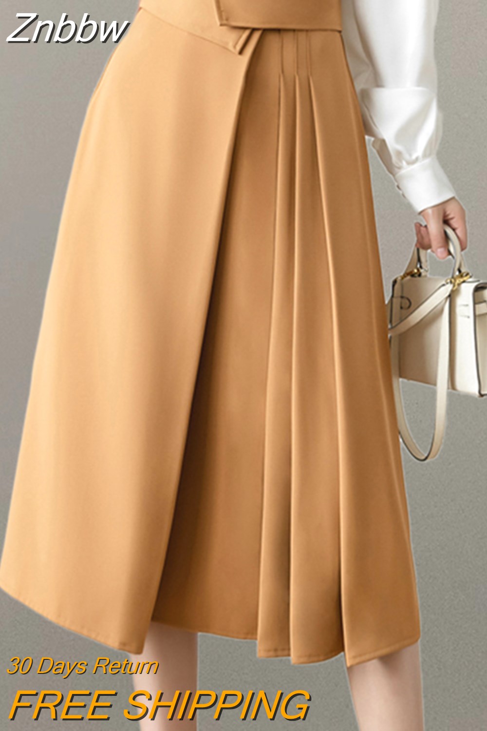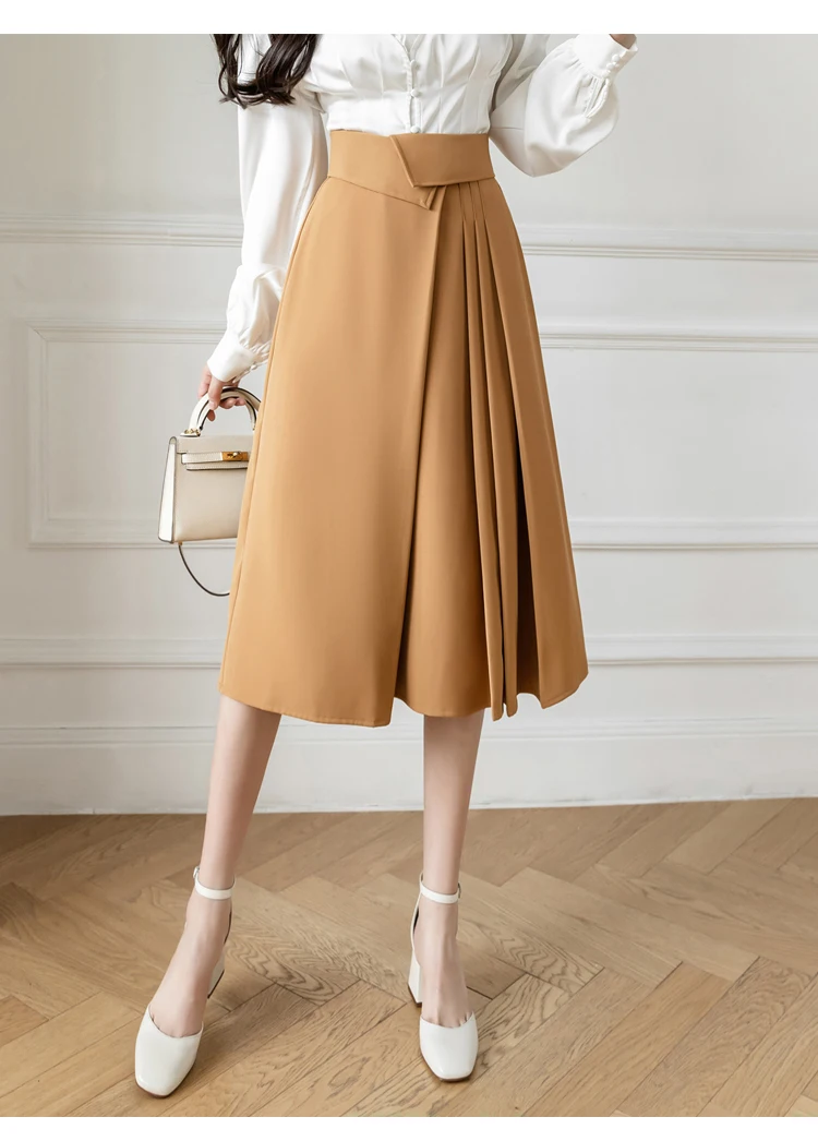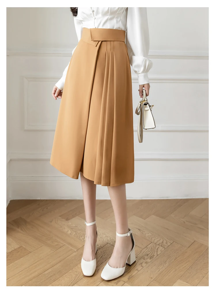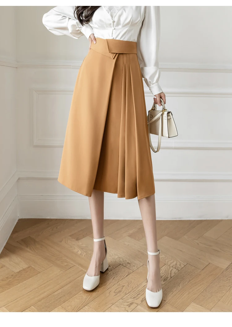 Znbbw Elegant Casual A-Line Skirts Women New 2023 Spring Chic Irregular Design High Waist Loose Pleated Skirts Faldas Mujer