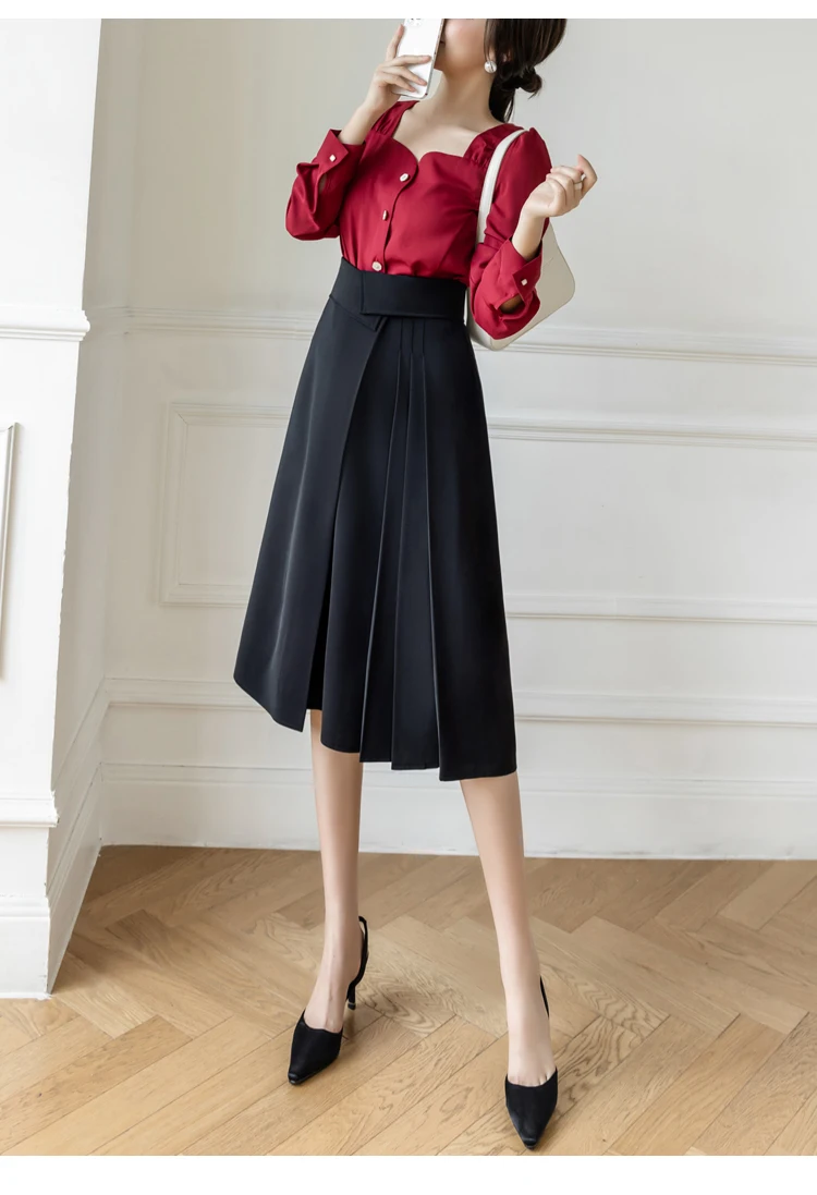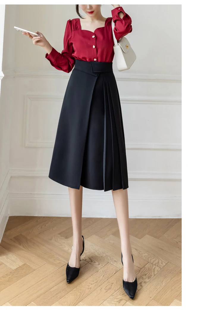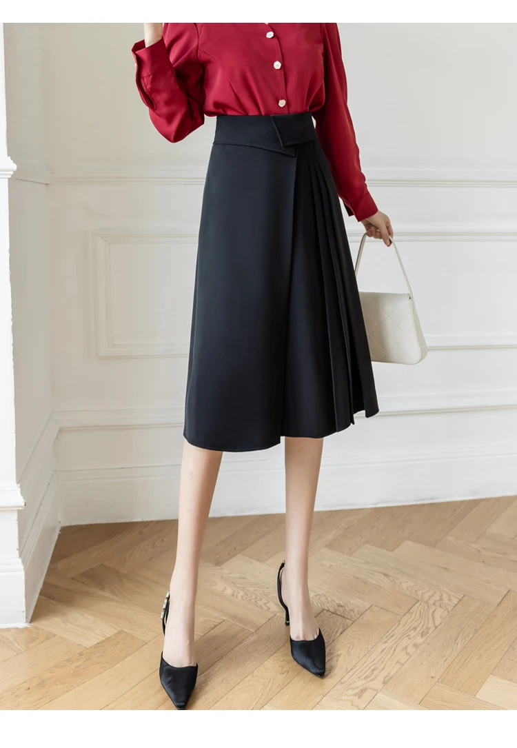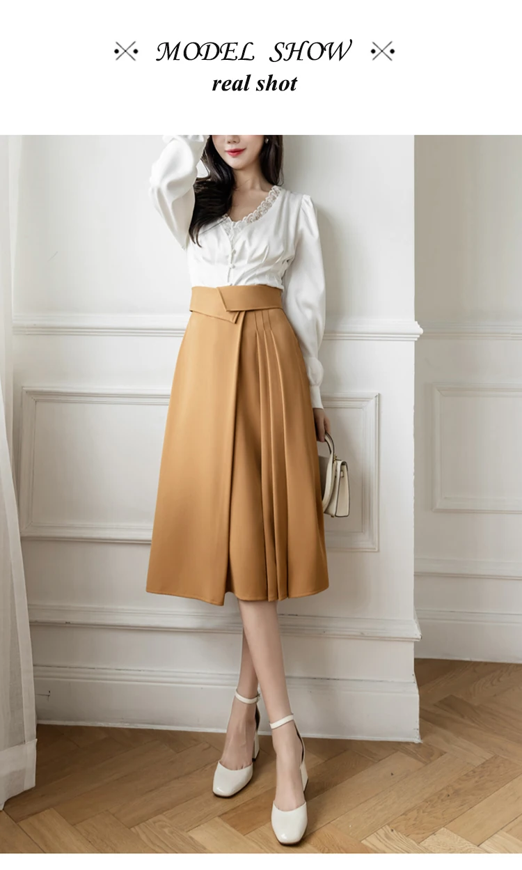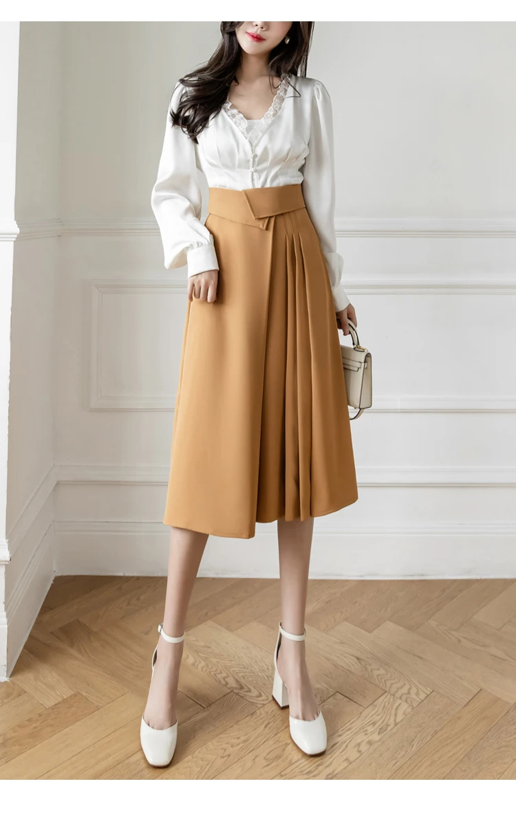 Znbbw Elegant Casual A-Line Skirts Women New 2023 Spring Chic Irregular Design High Waist Loose Pleated Skirts Faldas Mujer