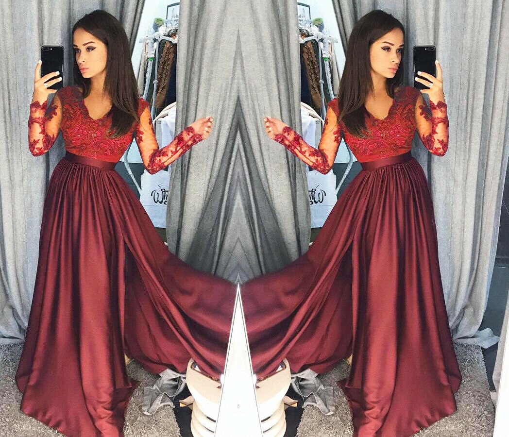 Znbbw Elegant Ladies Women Sexy Long Sleeve High Waist Lace Slim Fit V Neck Party Formal Split Maxi Dress Black/Wine Red