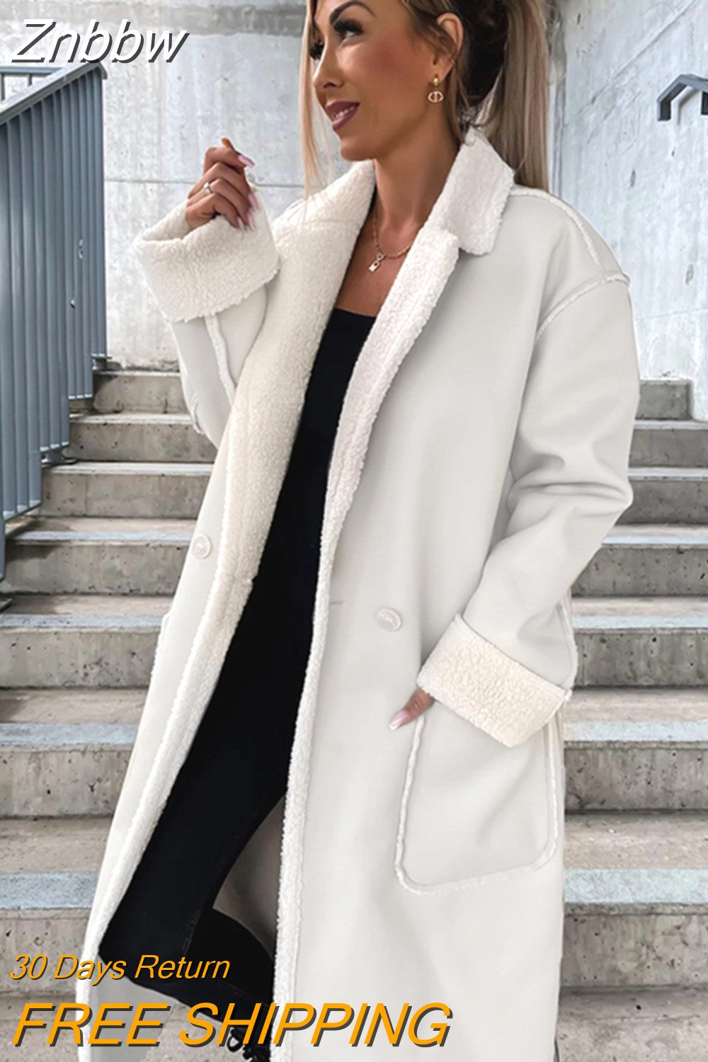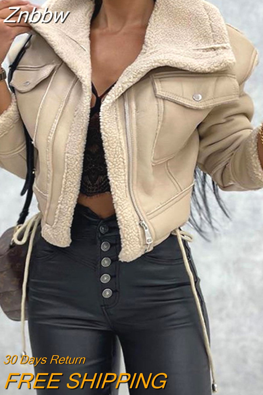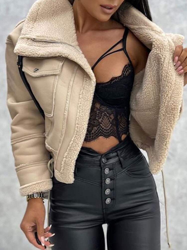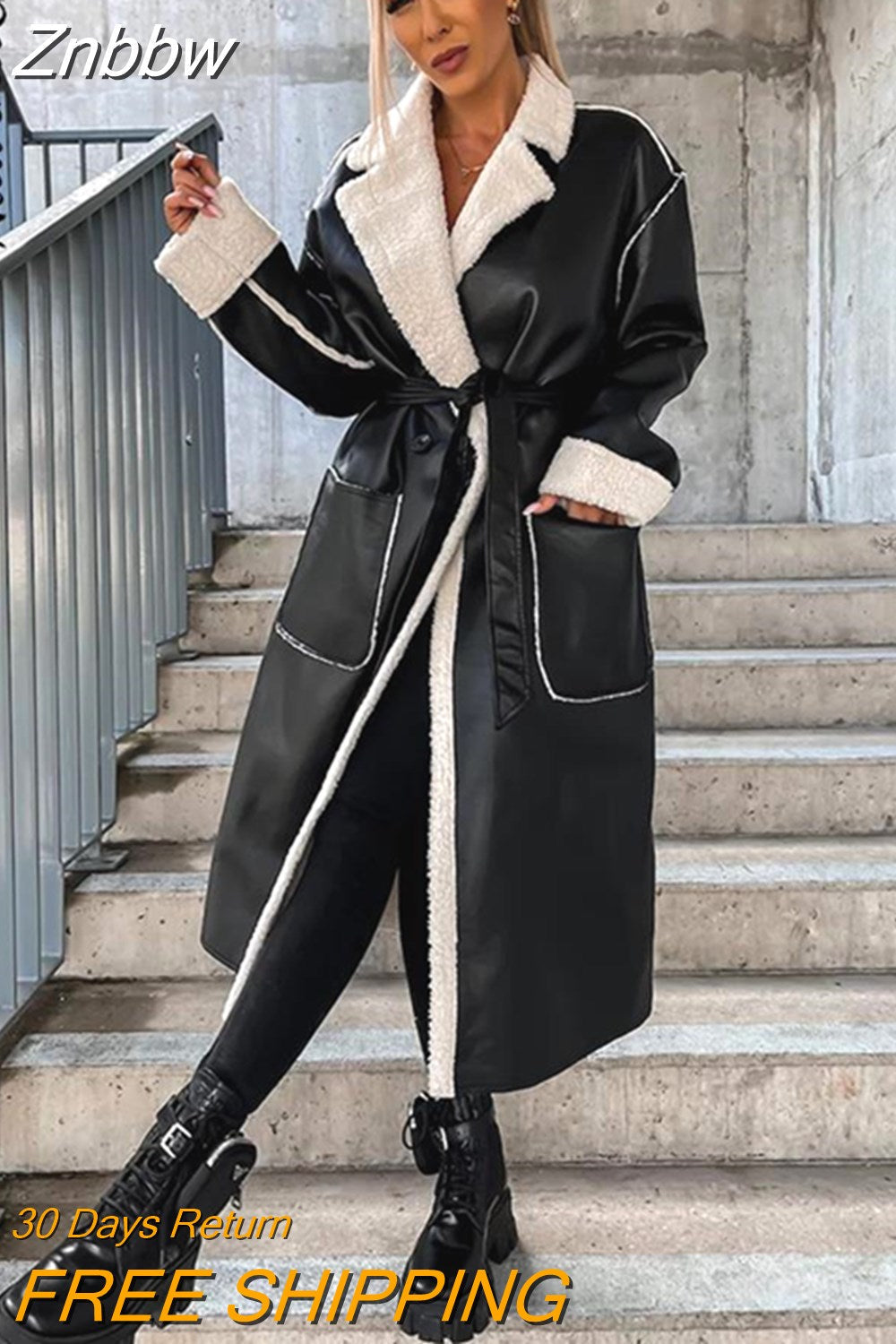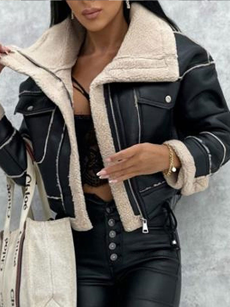 Znbbw Elegant PU Faux Leather Jackets Women Thick Warm Lapel Outwear Female Loose Long Sleeeve Coat 2023 New Year Winter Tops