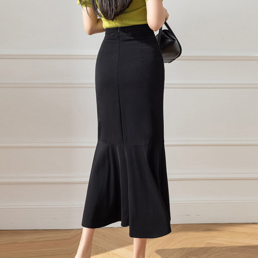 Znbbw Fashion High Waist Long Skirts For Women Elegant Irregular Ruffles Mermaid Skirts Korean Japan Office Lady Wrap Hip Skirt