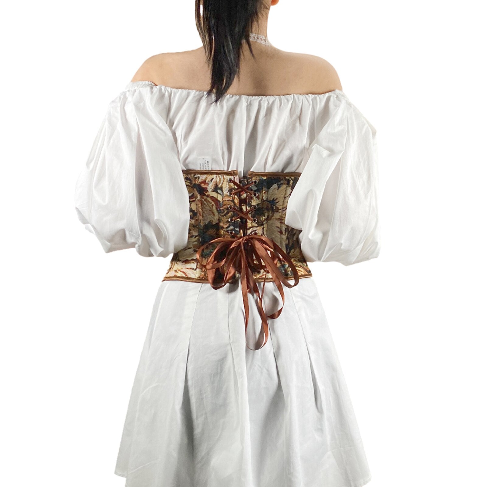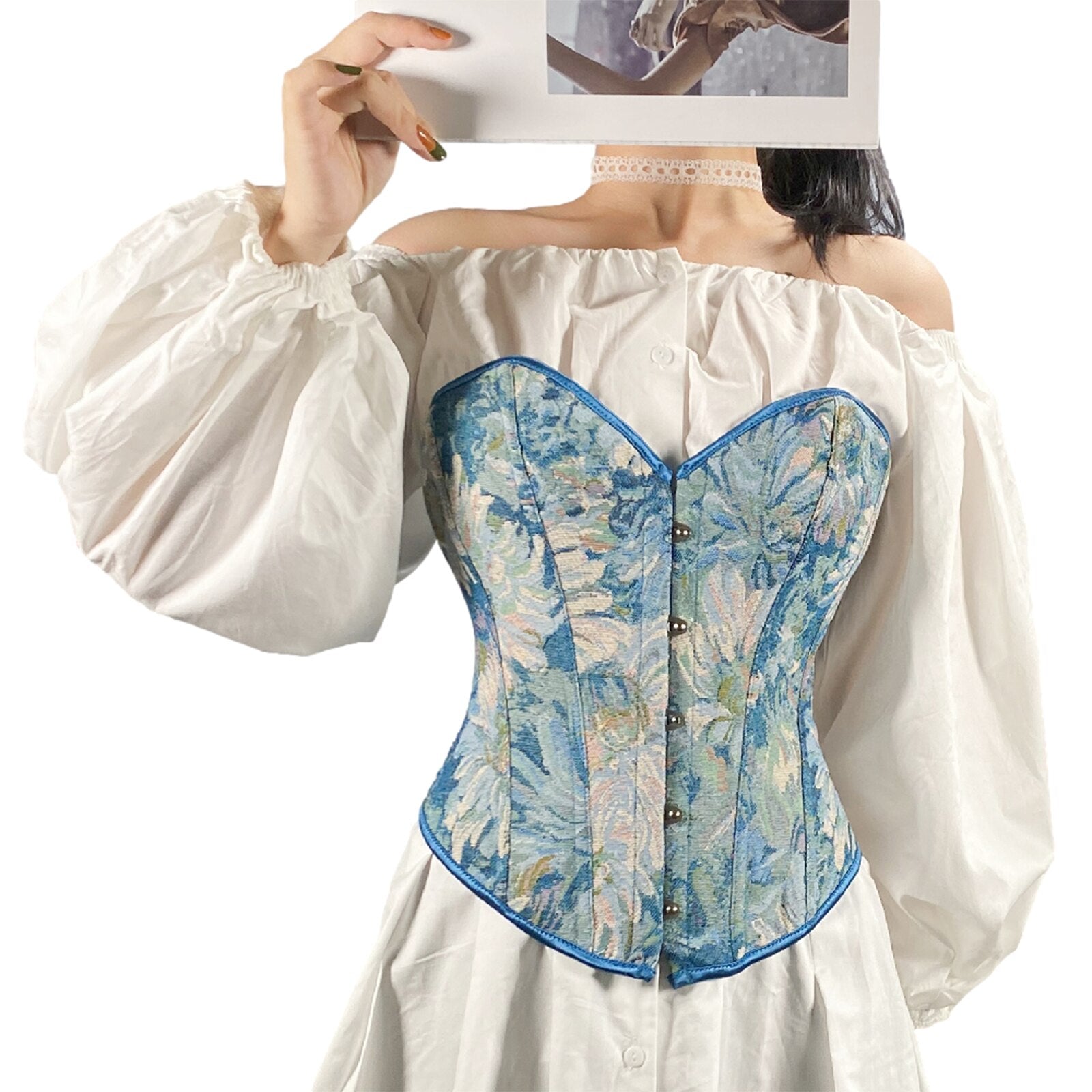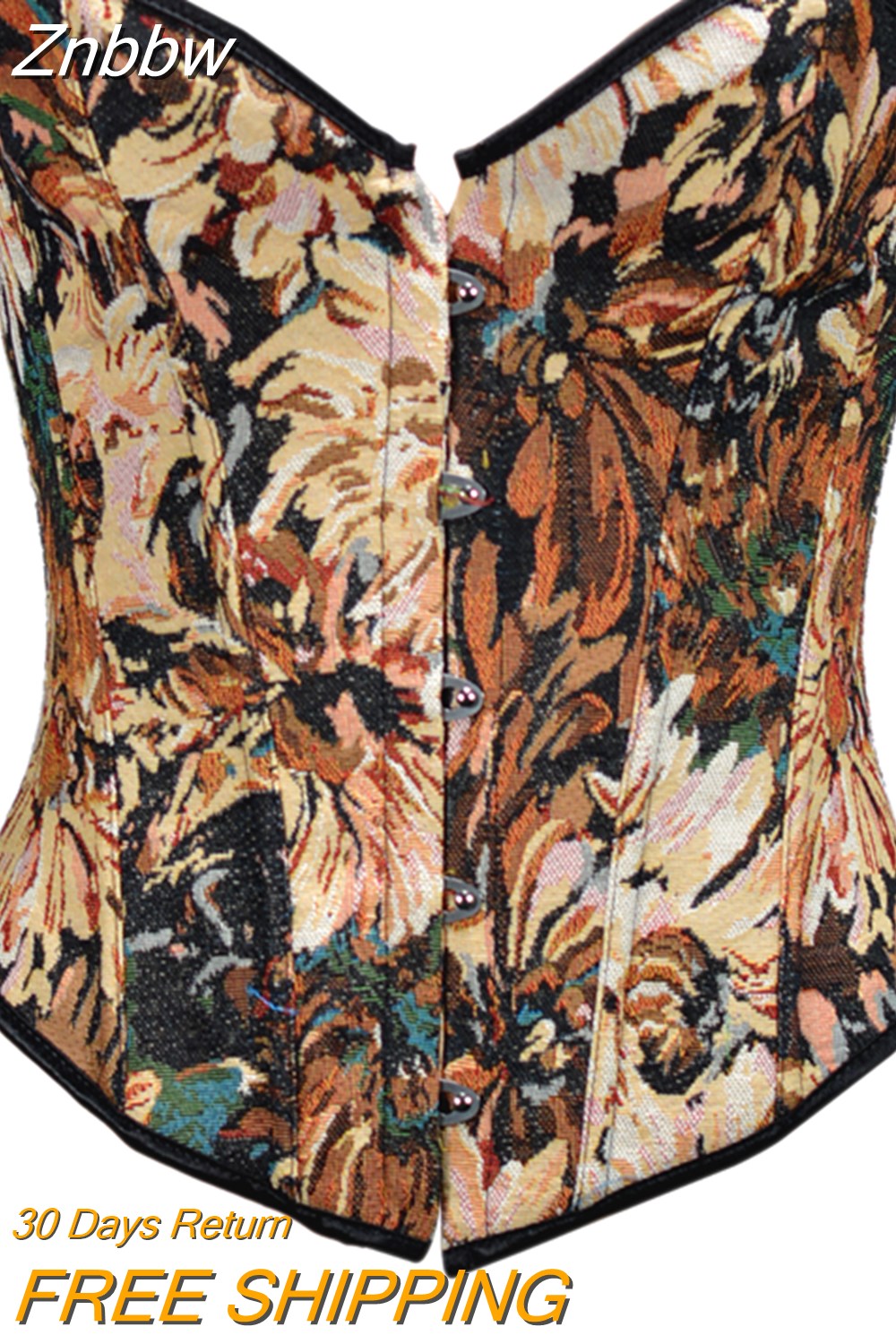 Znbbw Fashion Retro Sexy Floral Print Back Bandage Croser Girdle Waist Trainer Bustier Front Hook Buckle Push Up Shaper Tops
