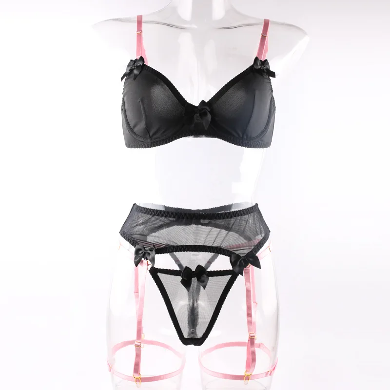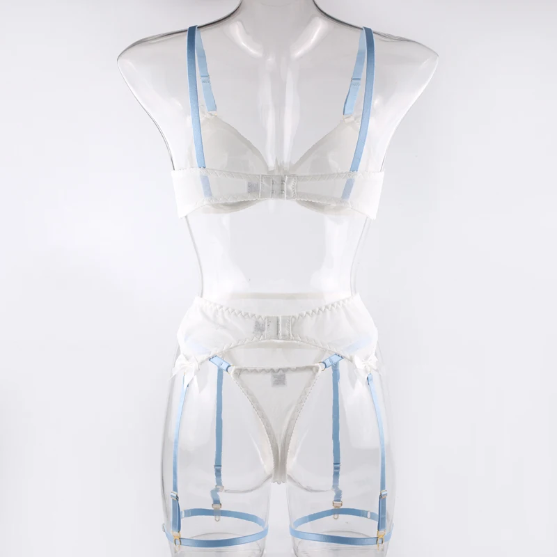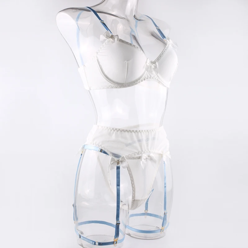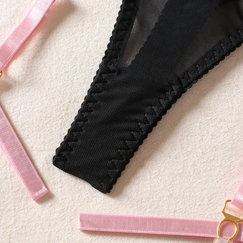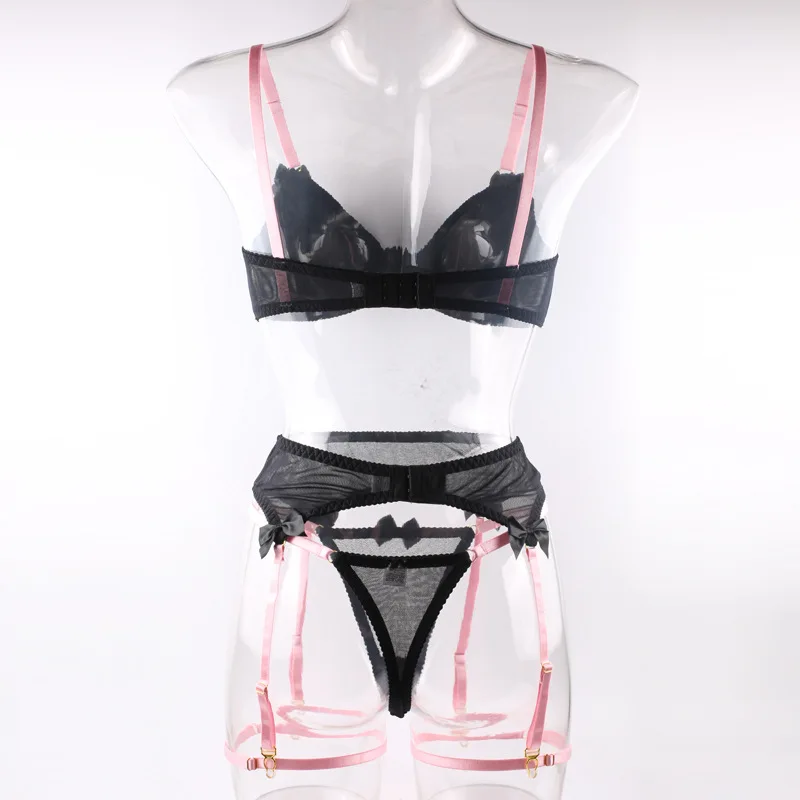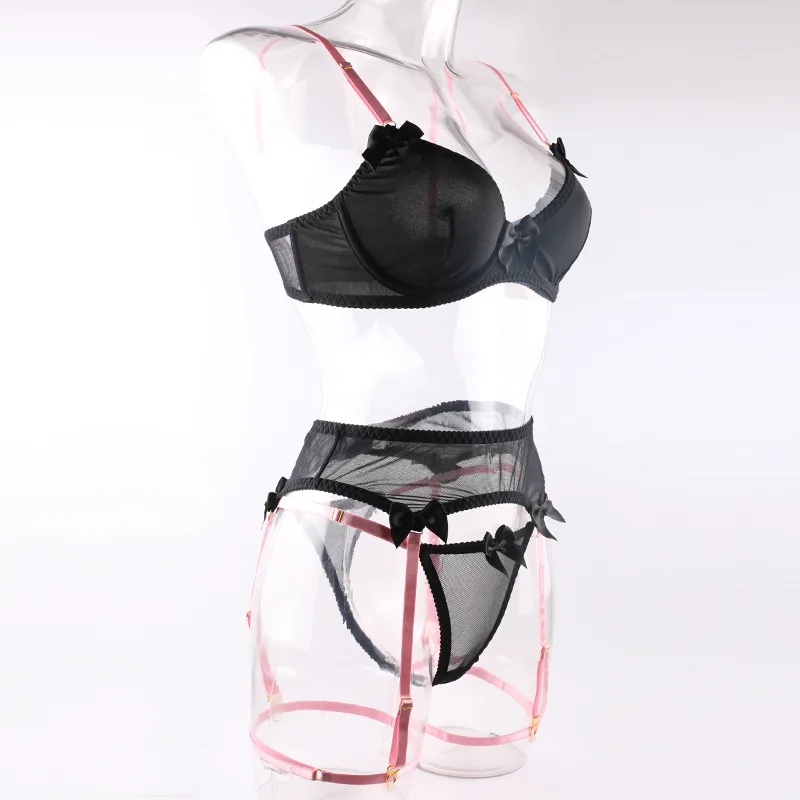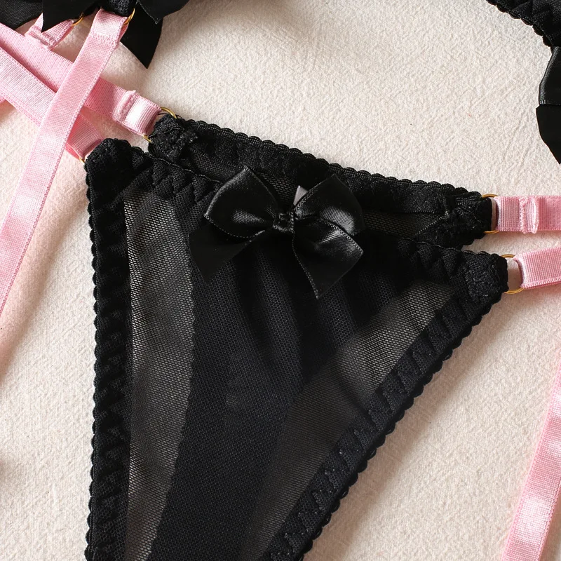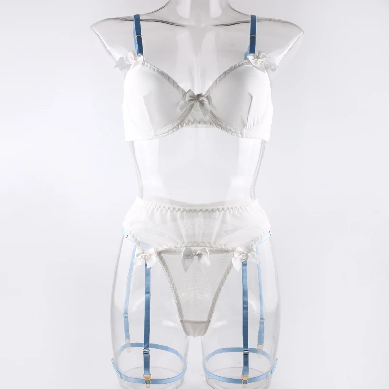 Znbbw Female Lingerie Fairy Garter Belt Set Bowknot Patchwork Transparent Mesh Intimate Erotic Bra And Panty Set Exotic Sets